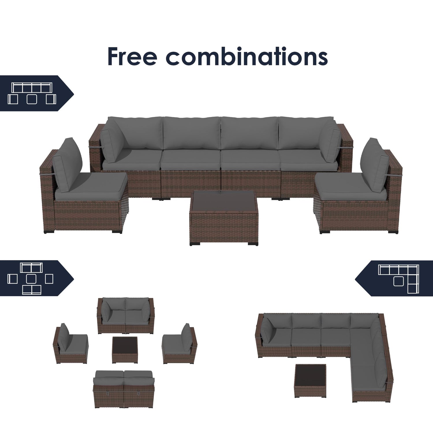 - 【A GOOD CHOICE FOR OUTDOOR】When you need a practical and stylish piece of outdoor furniture, this style of the porch furniture is a great choice. rattan weaving adds texture to the outdoor sofa, and various combinations increases a lot of fun to outdoors. Outdoor combined Patio Set could be widely used for patio, porch, backyard, balcony, poolside and garden. Modern design and high-quality materials of the Patio Furniture Set could enrich your outdoor life.
