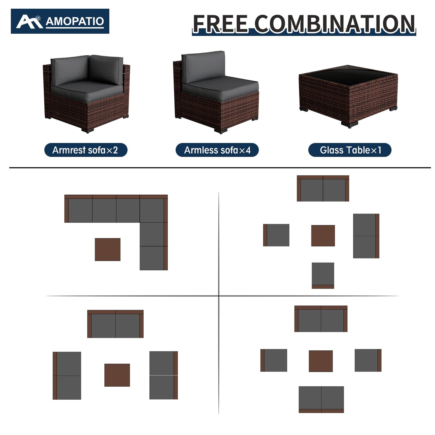 - 【ENJOY RELAXING TIME】The wicker patio furniture is a perfect addition for porch to get more relax while reading, or playing games. A fire pit with a rattan sofa is the best choice for outdoor use. In summer, it can be used for BBQ, drinking and chatting with friends. And the modern outdoor furniture set includes 4 middle chairs, 5 corner chairs, a tempered glass table and fire pit which can be separated and arranged into various configurations to fit your outdoor space.