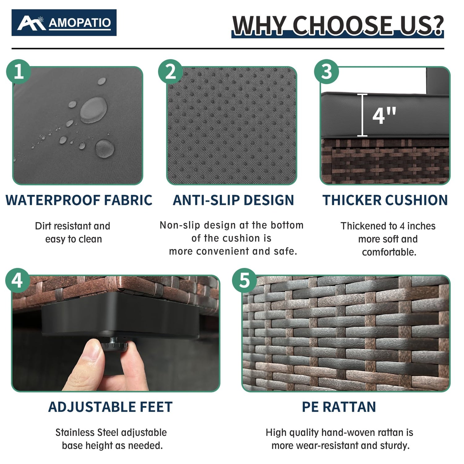 - 【ATTENTION PLEASE】Quite important! The patio furniture set has total 5 PACKAGES, which might be delivered on different days. If you do not receive the rest packages or have any further question, please feel free to contact our 27-hour online customer service, we will help you solve the problem.