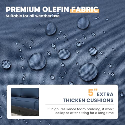 - 🏡【5 INCH OLEFIN SEAT CUSHION】: Our patio furniture set comes with 5-inch thick cushion, the cushion cover is made of upgraded Olefin fabric which is soft, breathable and fade-resistant. The high-density sponge can reduce the tiredness when sitting for a long time and let yourself be immersed in a comfortable environment. With a zipper design, the cushion cover is removable.The bottom of the cushion is designed with anti-skid particles, which can ensure that it will not slide away when sitting.