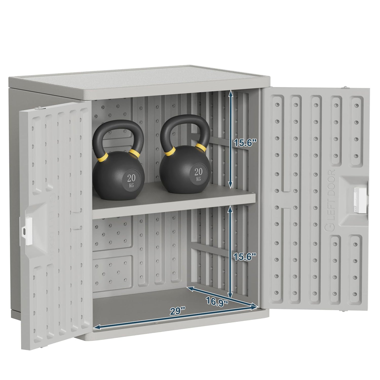 - IDEAL SIZE: 19.7"D x 29.5"W x35.4"H, this garage storage cabinet is perfectly to store outdoor small items, without taking up too much space.