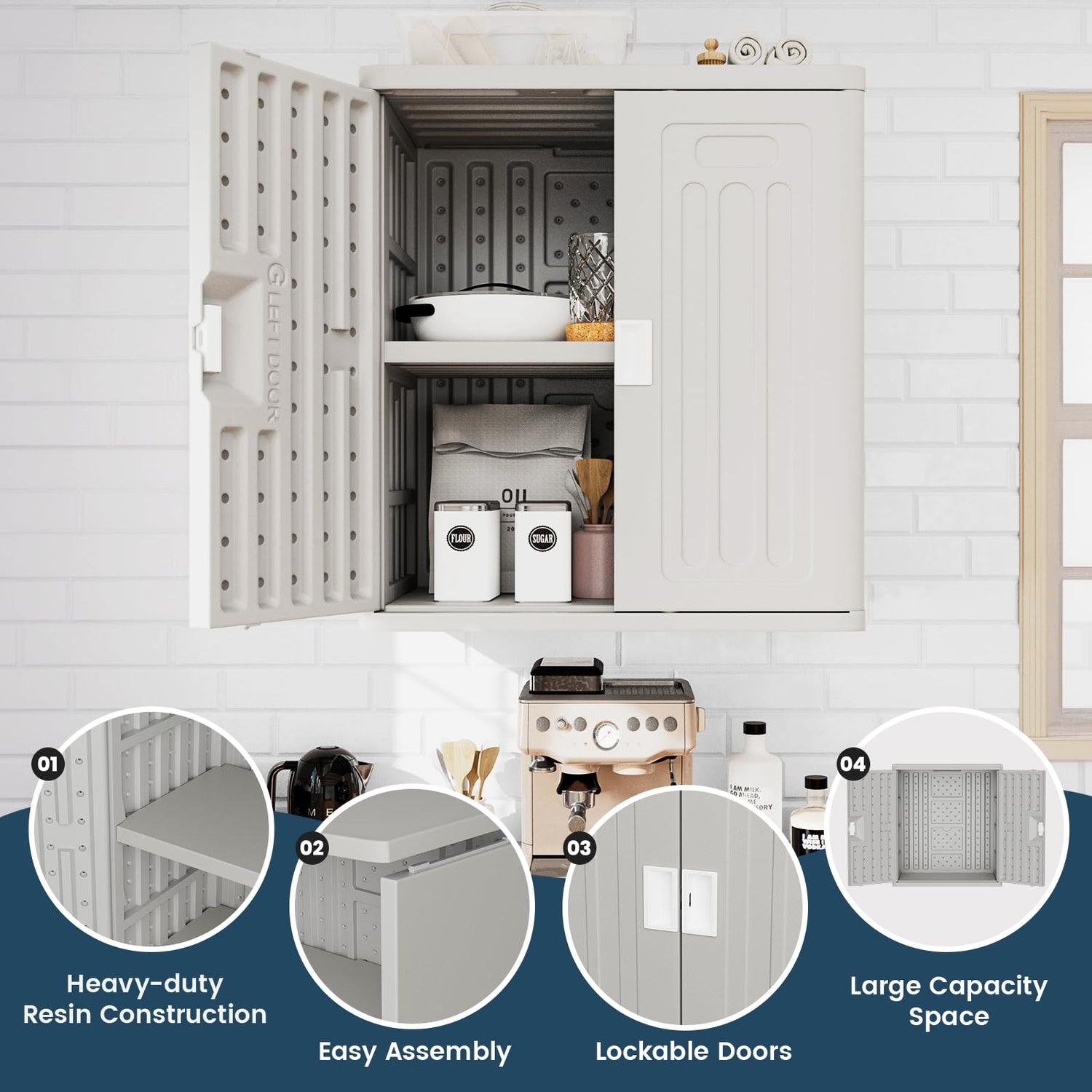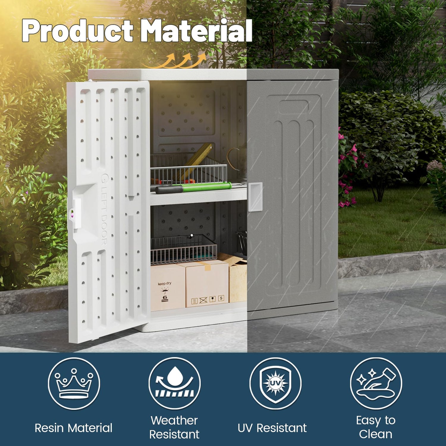- STURDY CONSTRUCTION: The construction of this resin storage cabinet are engineered for superior strength and durability,the material is both waterproof and corrosion-resistant, allowing it to be used outdoors for long periods of time.