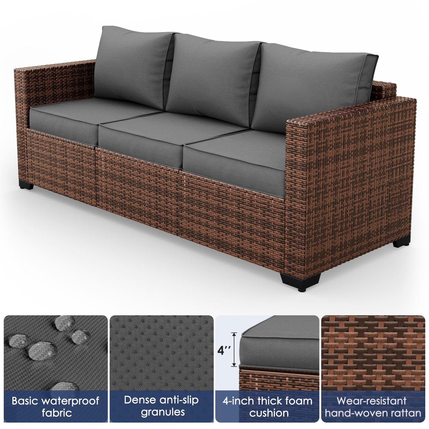 - 【A GOOD CHOICE FOR OUTDOOR】When you need a practical and stylish piece of outdoor furniture, this style of the porch furniture is a great choice. rattan weaving adds texture to the outdoor sofa, and various combinations increases a lot of fun to outdoors. Outdoor combined Patio Set could be widely used for patio, porch, backyard, balcony, poolside and garden. Modern design and high-quality materials of the Patio Furniture Set could enrich your outdoor life.