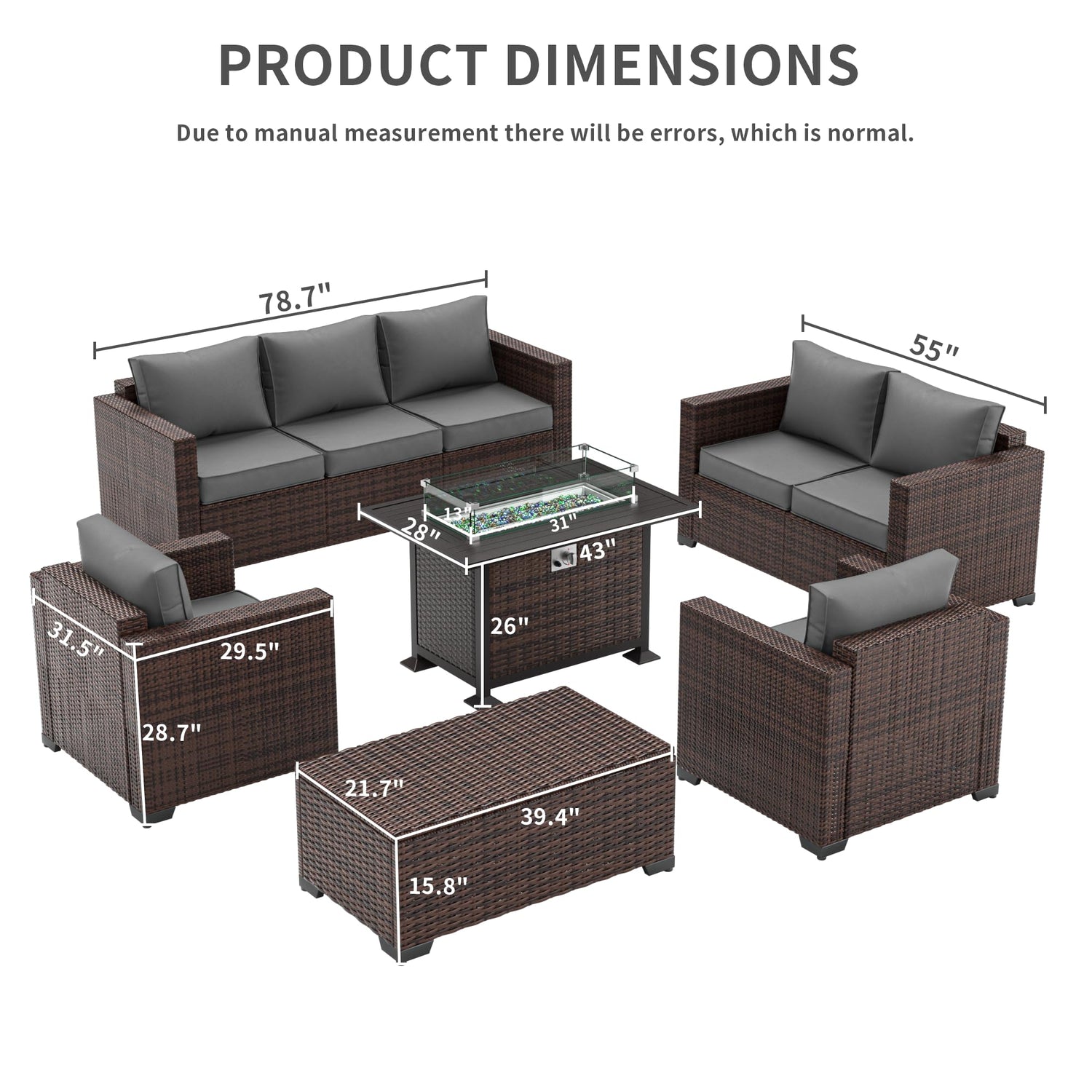 Amopatio Patio Furniture Set with Fire Pit Table, 8 Pieces Outdoor Oversized Sectional Sofa Wicker Patio Armrest Couch, 44" Fire Pit Conversation Sets with Storage Table, Waterproof Covers (Grey)