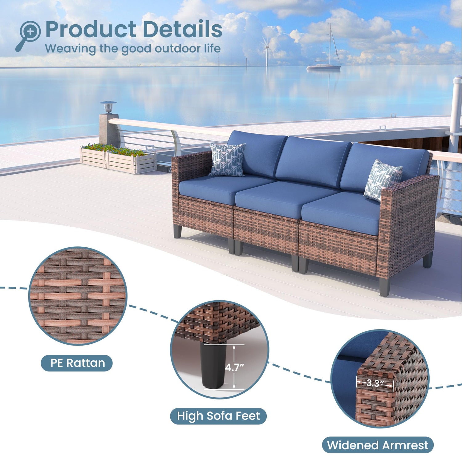 - 【THICKENED CUSHION & NON-SLIP】This patio furniture set offers a super comfortable seating experience. Thickened seat cushions(4.3 inches) with high resilience sponge and bottom anti-slip dotted plastic fabric, the cushions with smooth zipper is machine washable so that you can zip it off and start a quick wash to have them looking brand new.