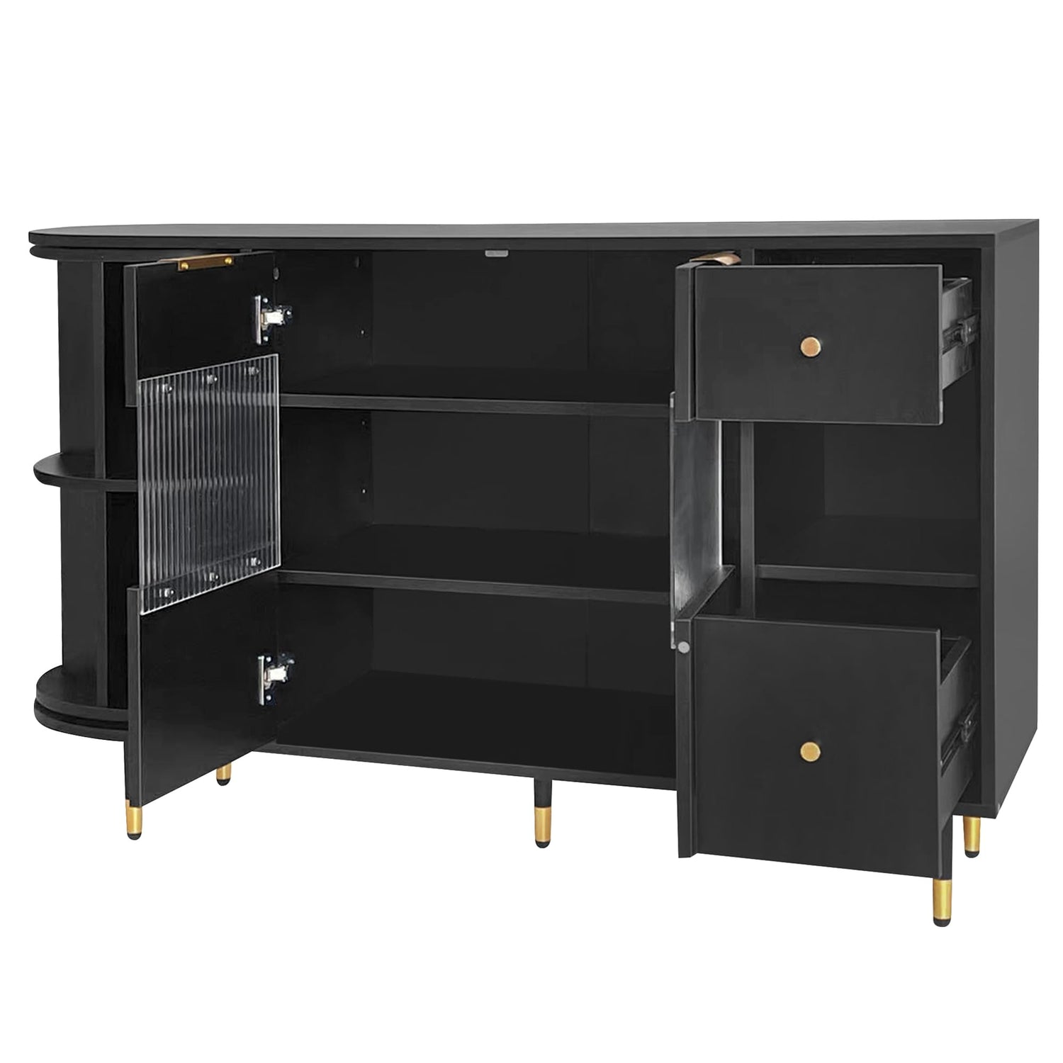 Amposei Modern Dining Buffet 51-Inch Glass Door Sideboard Cabinet Wooden Credenza Console Storage Cabinet with Drawers, Adjustable Shelves & Rotating Open Racks for Living Room Kitchen (Black)