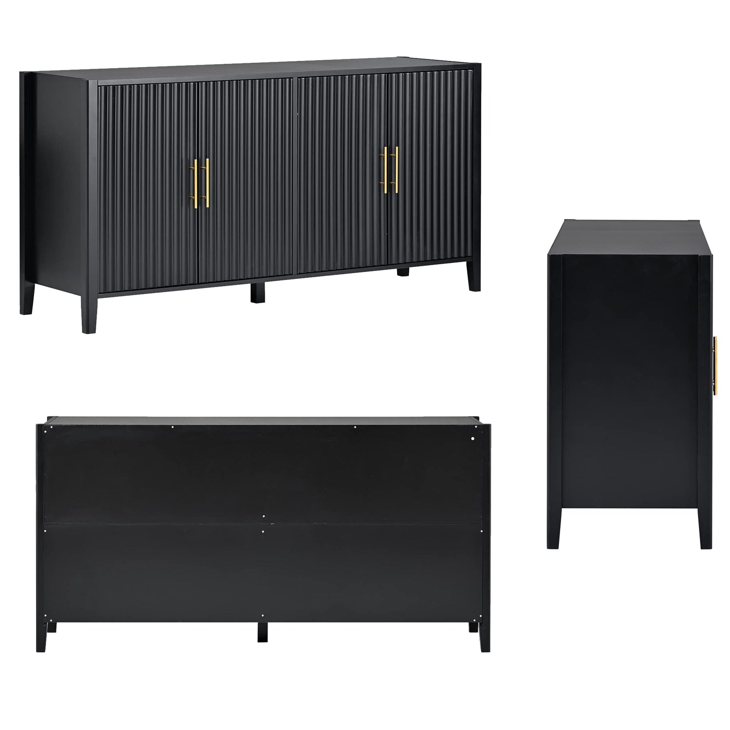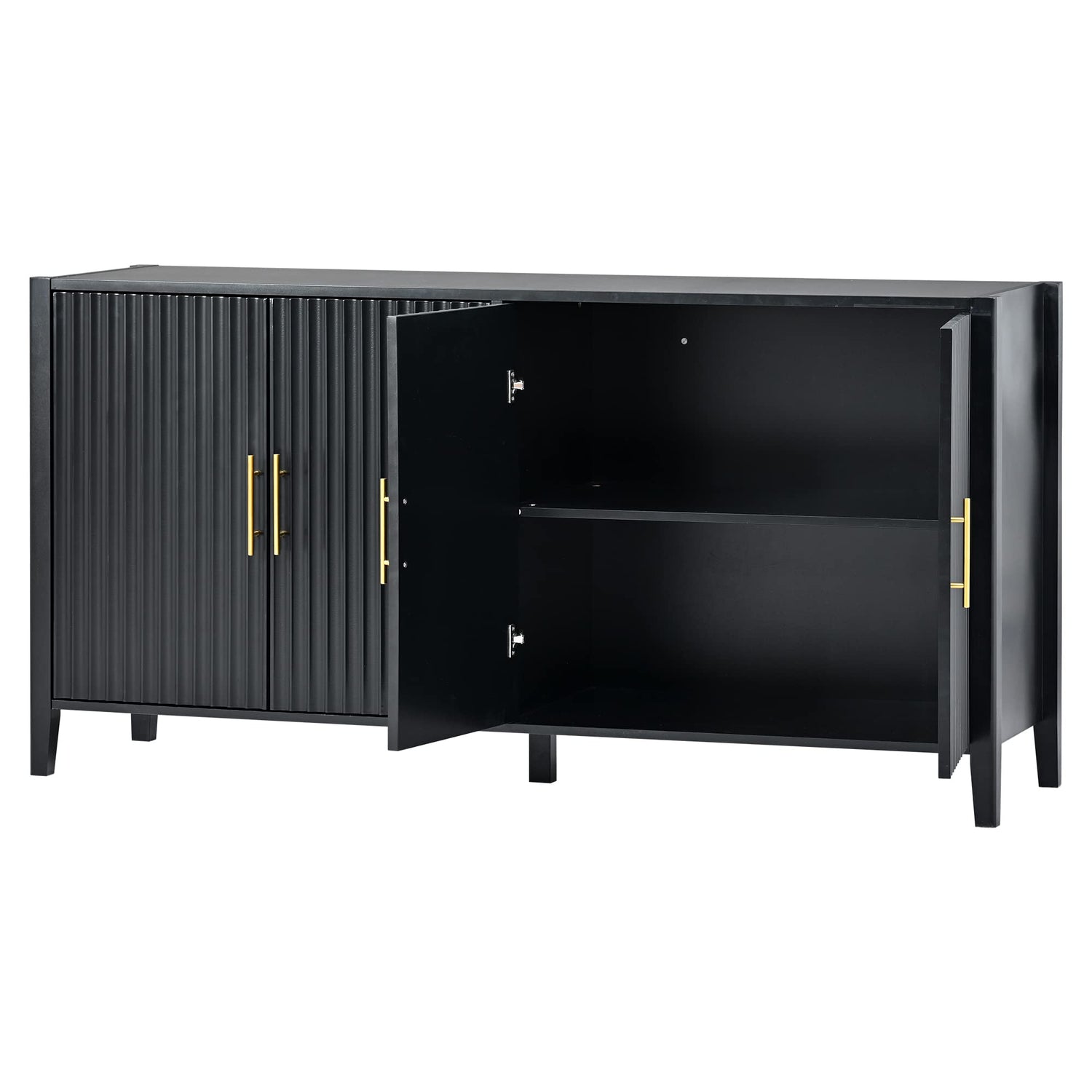 Amposei Sideboard Buffet Cabinet 63-Inch Wooden Credenza Storage Cabinet 4-Door Entryway Console Cabinet for Living Room Entrance (Black)