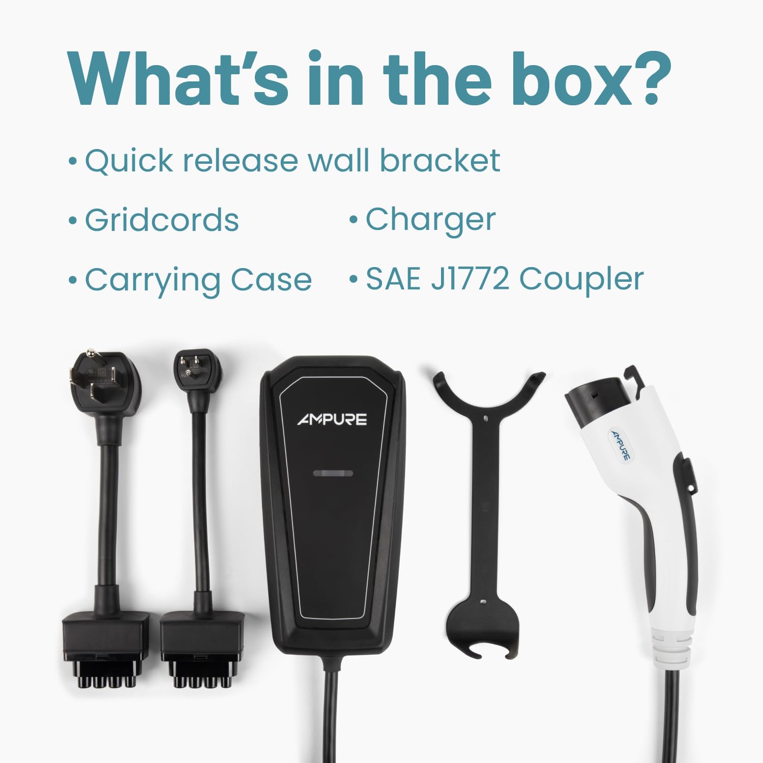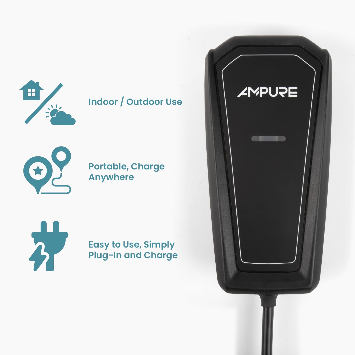 - Portable and Easy Installation: Designed to be portable, AMPURE GO comes with a quick-release mounting bracket and can be easily transported between locations. Just plug into a NEMA 14-50 outlet and you're ready to charge.