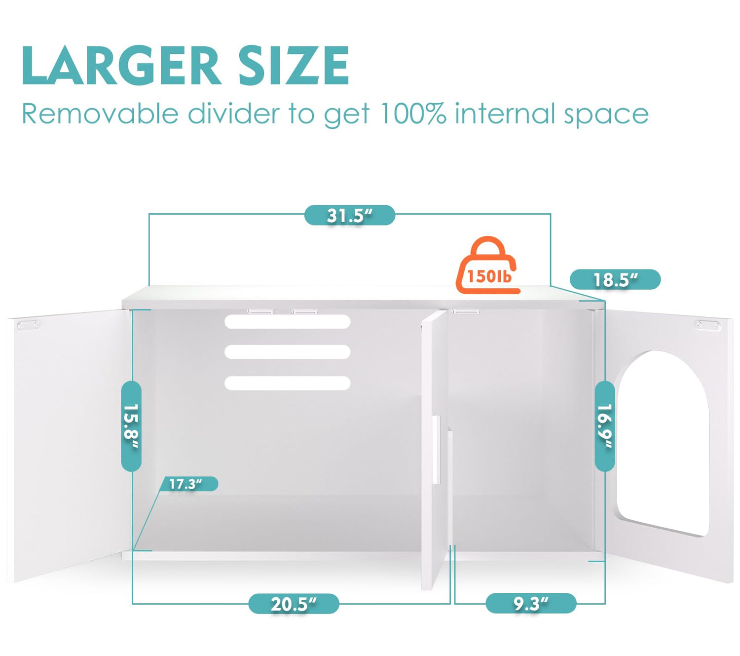 - High-end Fashion: Borderless minimalist aesthetic design. Cat litter box enclosure furniture have never looked so beautiful.