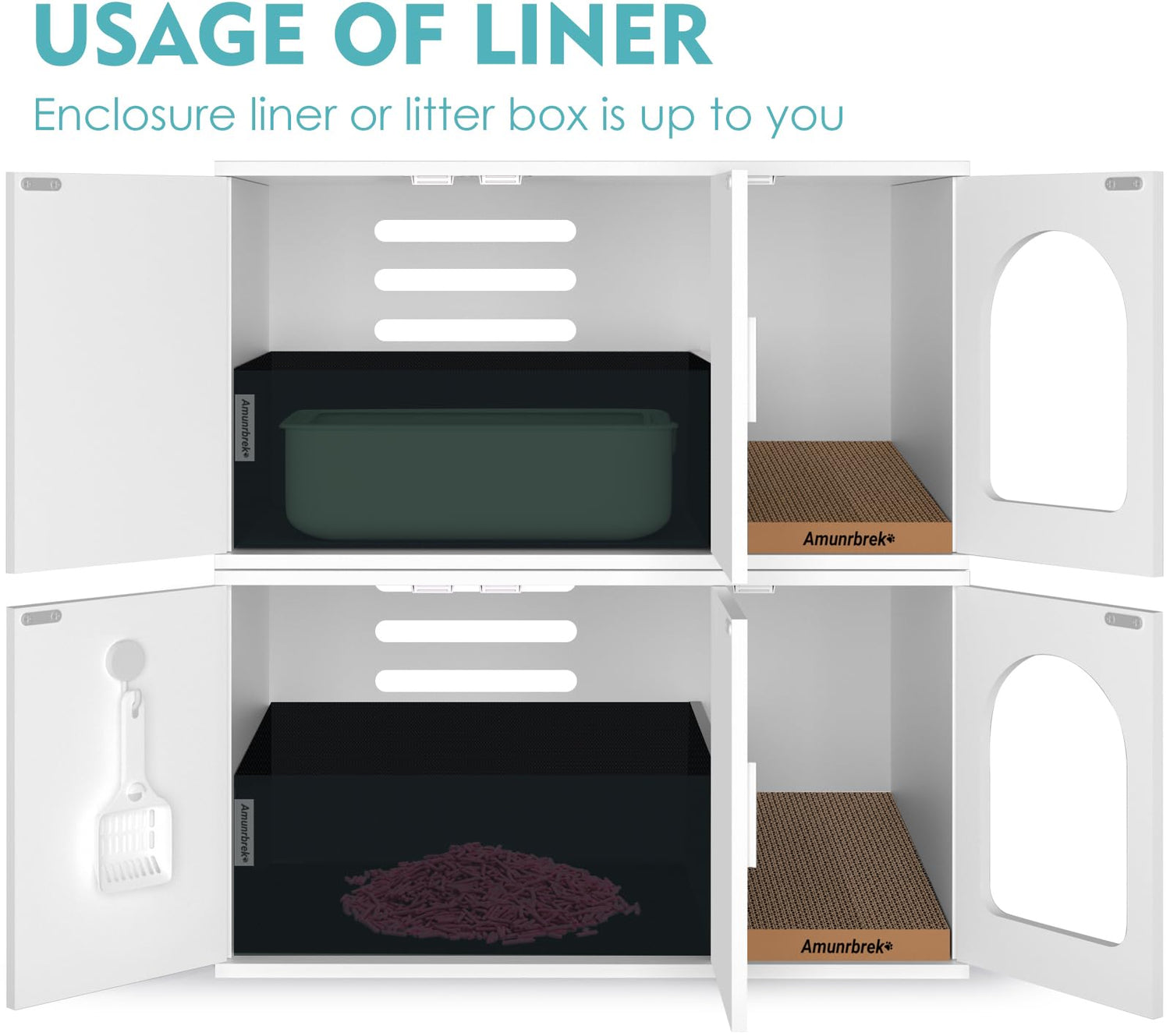 Amunrbrek Litter Box Enclosure, Cat Litter Box Enclosure Furniture, Wooden Litter Box Furniture with 2 Enclosure Liner (White)