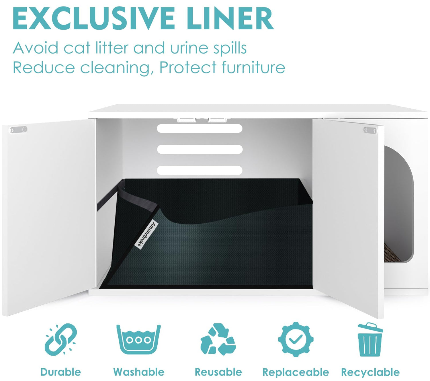 - Exclusive Liner: It can replace or place the cat litter box to avoid cat litter and urine spillage, reduce cleaning and protect furniture.