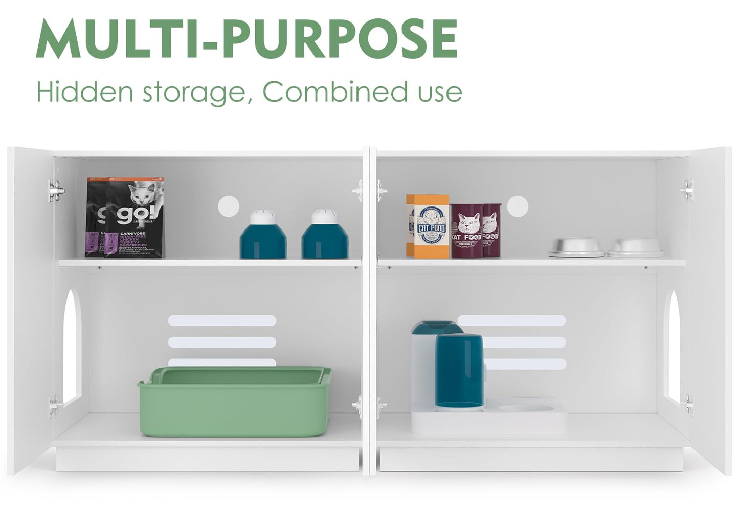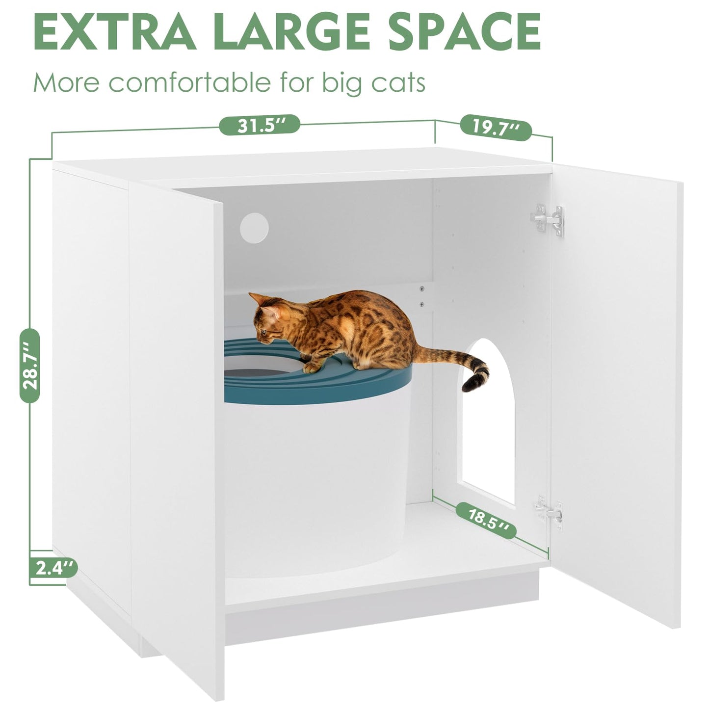 Amunrbrek Litter Box Enclosure, Large Litter Box Furniture, Modern Cat Litter Box Enclosure Furniture with Storage, Side Cabinet (White)