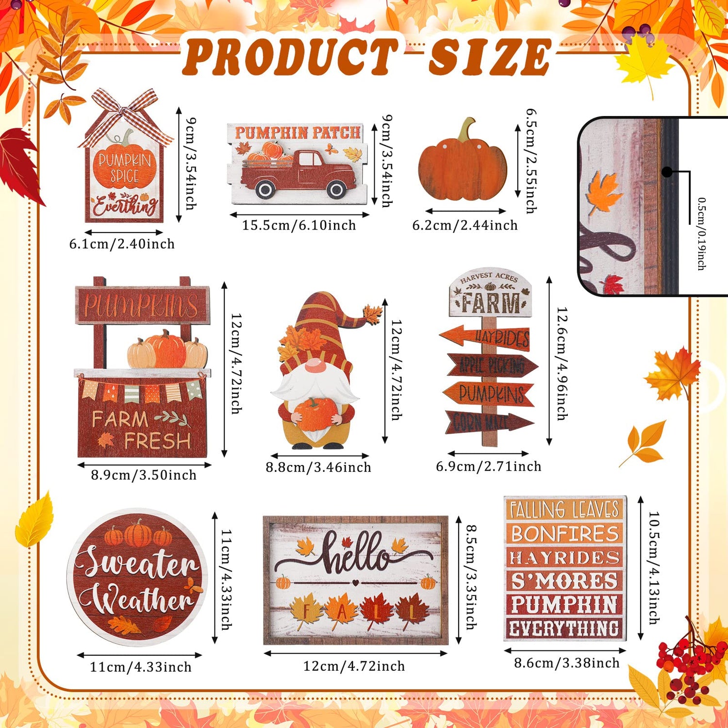 - Fall Tiered Tray Decorations Set: you will receive 13 pieces of fall tiered tray decorations, including 7 pieces of freestanding fall decorations and 6 pieces of pumpkin and maple leaf shaped decorations that can be strung on the rope provided to form a banner, and there are some adhesive dots, sufficient quantity can meet your home or party tiered tray decor needs, and you can share with others