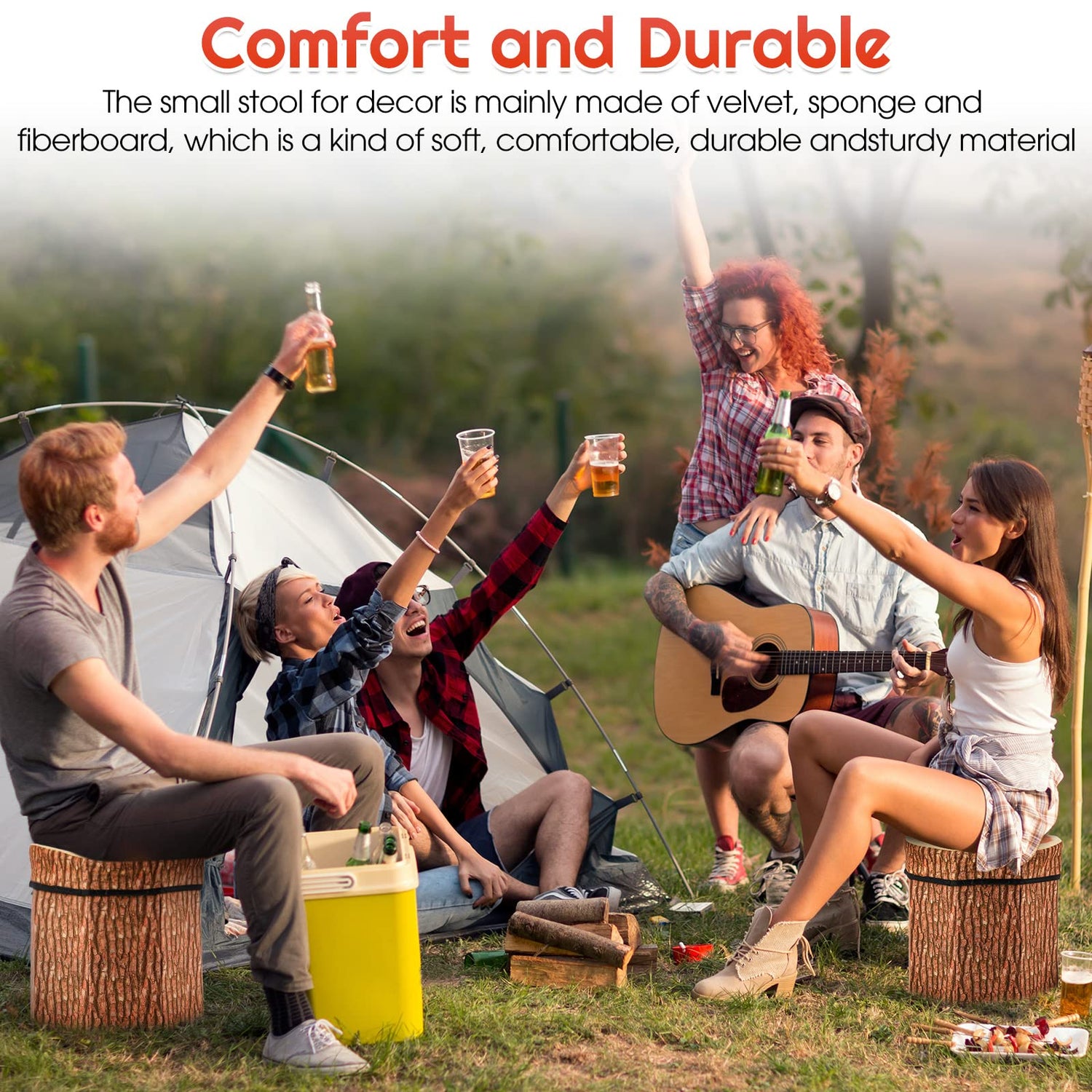 Amylove 3 Pack Tree Stump Storage Stool 12 x 12 Inch Stool Ottoman, Cute Folding Storage Toy Box with Foam Cushion, Collapsible Seat Chest (Classic)