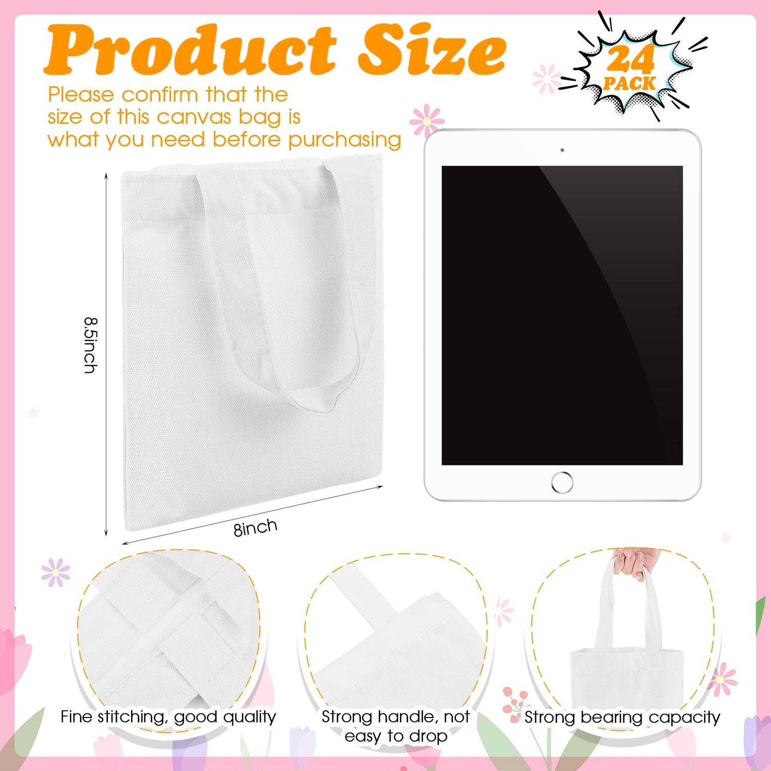 - Sufficient for Needs: you will receive 24 pieces of mini canvas tote bags, offering sufficient quantity for daily and party use as well as craft demands, and you can also share them with other people; These DIY party favor tote bags are made of canvas material with exquisite craftsmanship and solid stitches, making them safe and odorless, reliable and reusable, and not easy to tear, deform or break, allowing you to use them for a long time