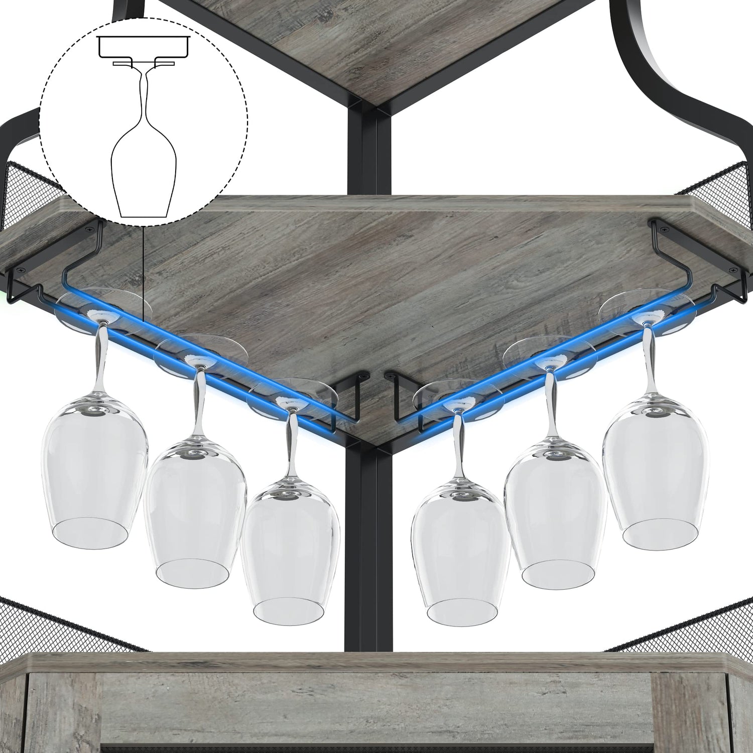 Amyove Corner Wine Bar Rack Cabinet with Detachable Wine Rack, Bar Cabinet with Glass Holder, Small Sideboard and Buffet Cabinet with Mesh Door