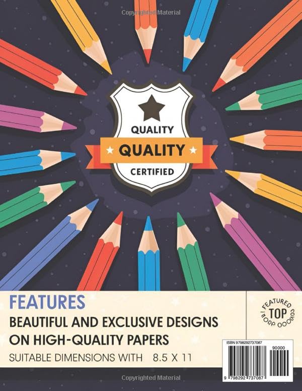 PREMIUM MATERIAL & BOOK SIZE: High quality pages with reasonable size of 8.5x11 inches. Neat and sturdy 90 GSM white pages with black ink designs that is perfect for your coloring needs.