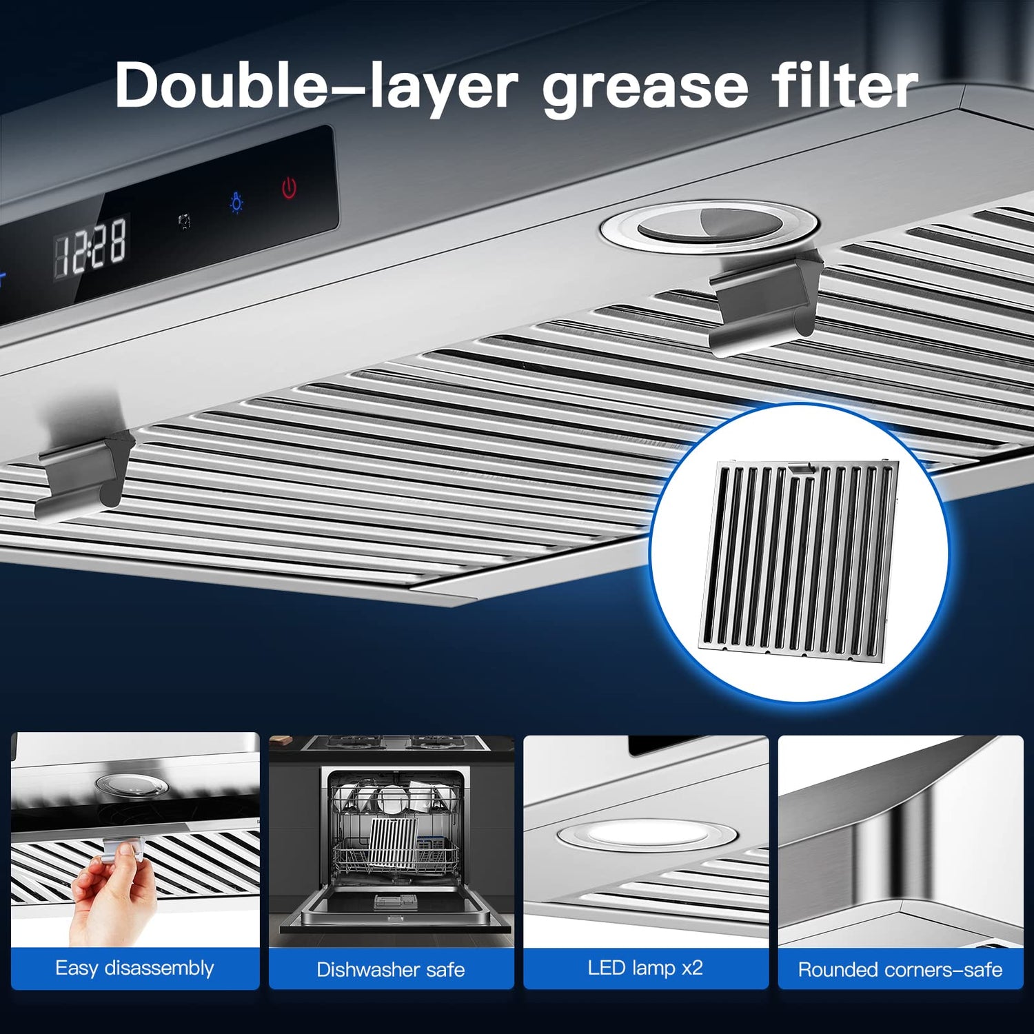 - 【Stainless Steel Range Hood】The range hood 30 inch under cabinet is made of 430 stainless steel,not deform,protect the suction motor and prevent oil or smoke seeping out.