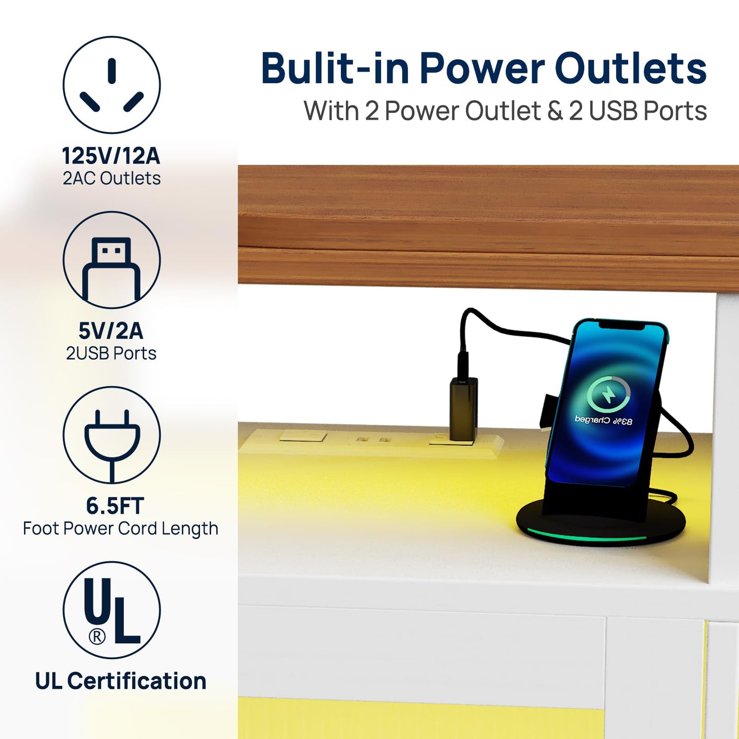 - 【Bar Cabinet with Charging Station】Our liquor cabinet is equipped with 2 outlets and 2 USB ports , you can easily use coffee makers, juicers or bar accessories. Mobile devices such as mobile phones, keyboards, and headphones can be charged at any time, don't need to find extra power outlets. 6.5ft power cord for easy wiring.