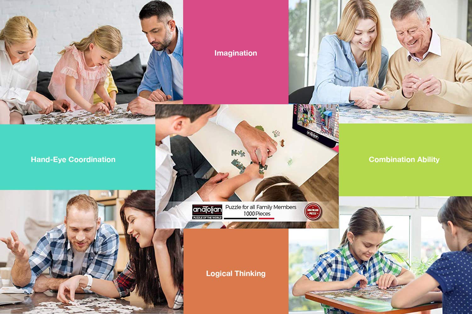 - Anti-Glare Surface with Grid Cut - Anatolian puzzles use an exclusively developed, thick blue cardboard coated with fine cellophane, to create a glare-free puzzle image with bright colors and give you the best puzzle.