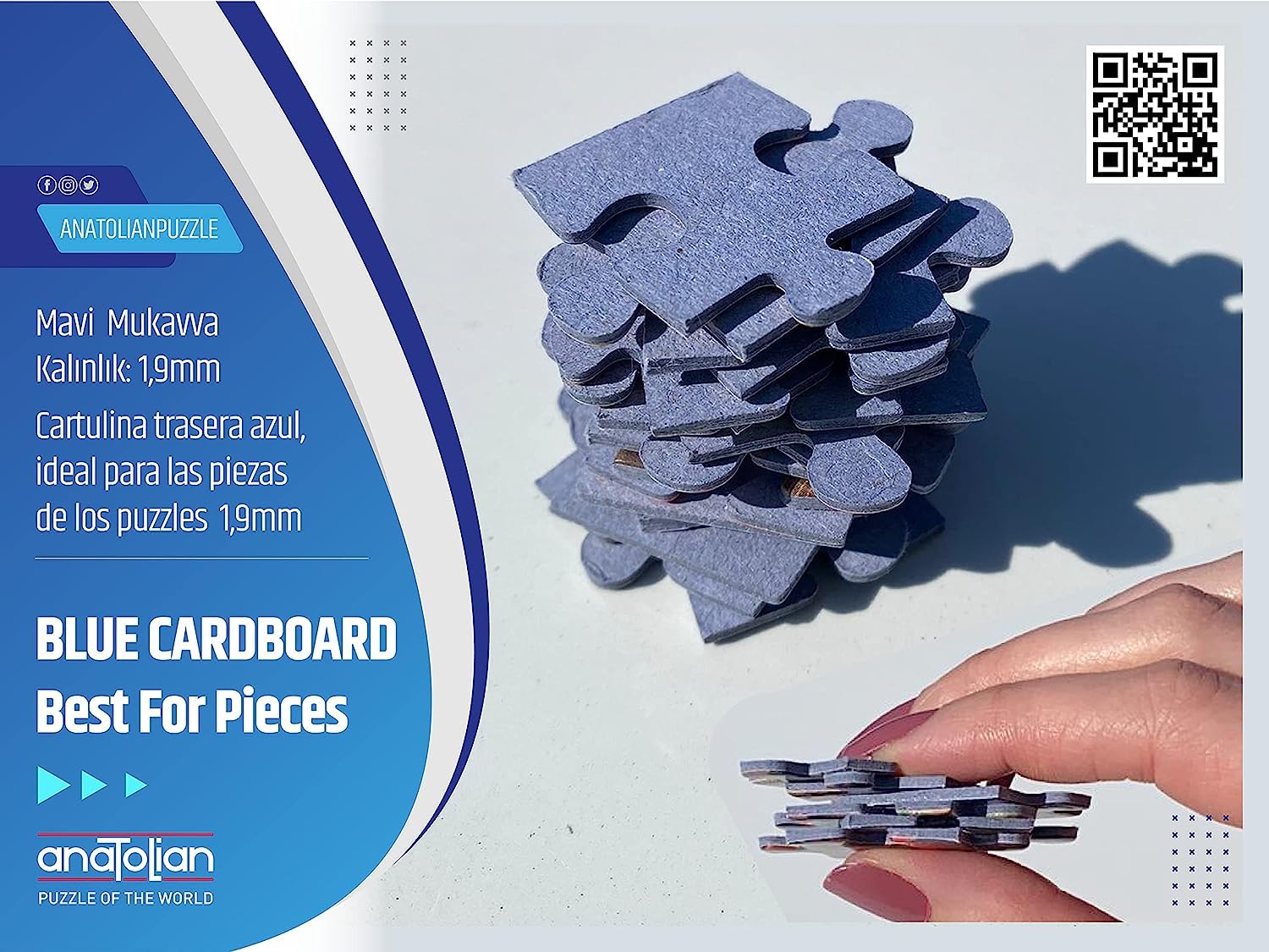 - Anti-Glare Surface with Grid Cut - Anatolian puzzles use an exclusively developed, thick blue cardboard coated with fine cellophane, to create a glare-free puzzle image with bright colors and give you the best puzzle.