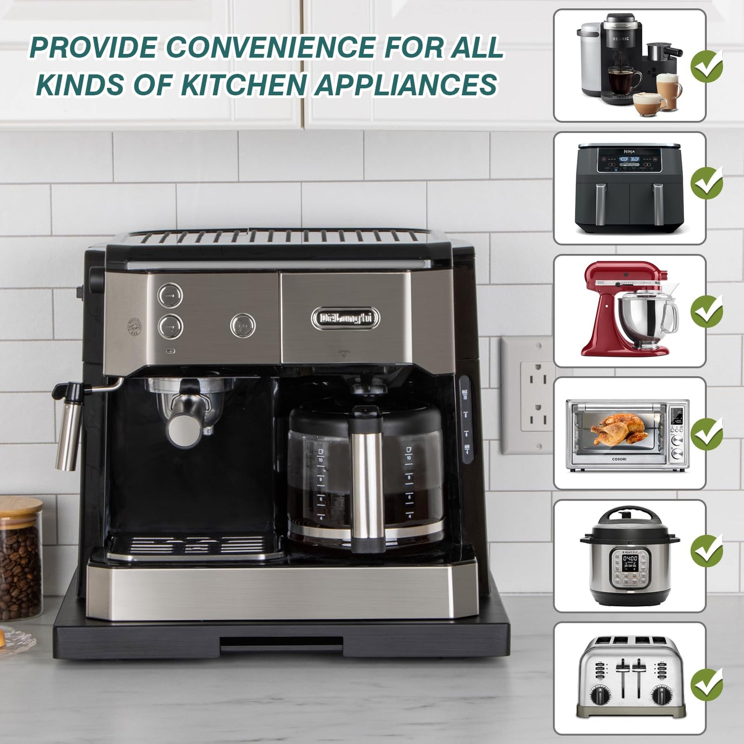 - 【Stop scratching the countertop】 Our sliding tray uses better quality wheels. Wide and sturdy, not only is it covered in soft plastic, but it also has silent bearings built in. Even with very heavy appliances, you can slide it effortlessly and smoothly without leaving any scratches on the countertop.