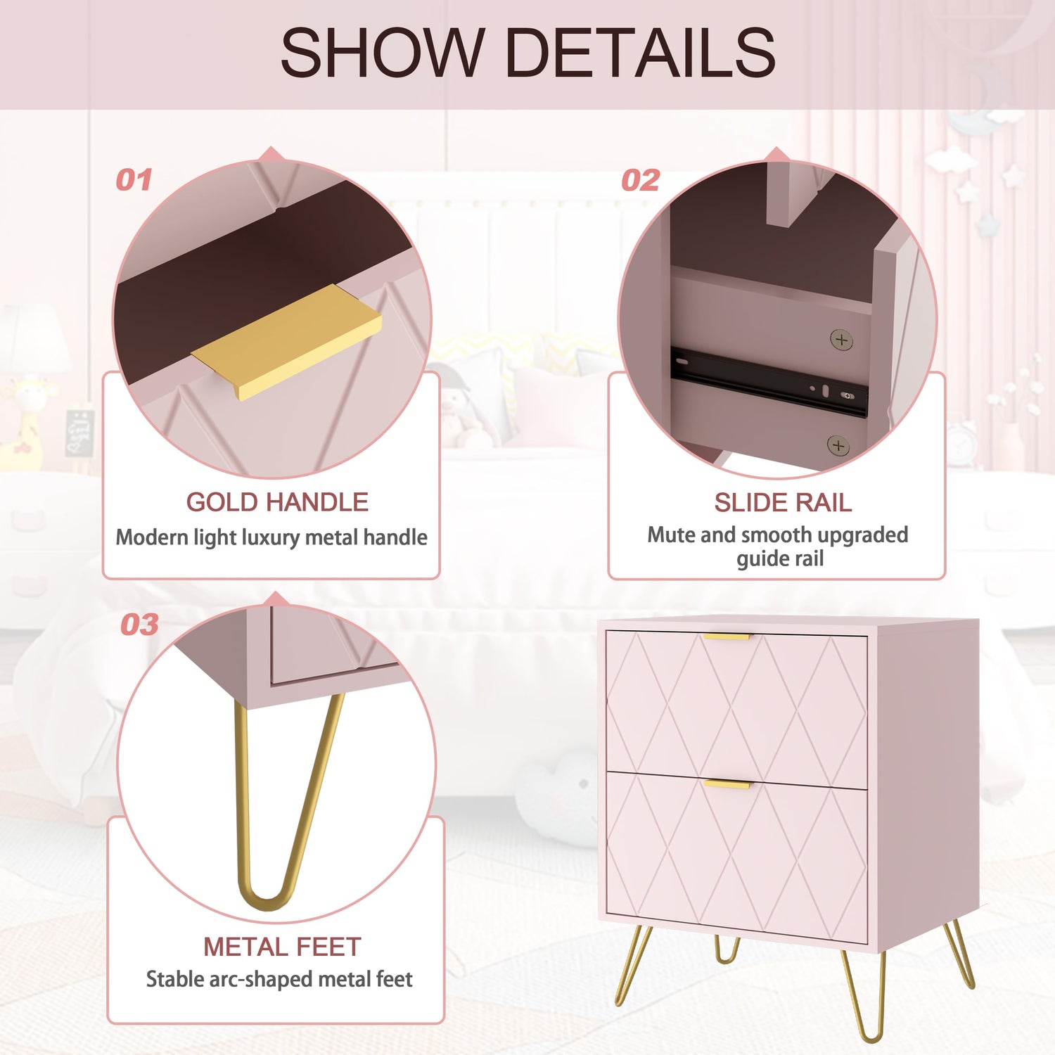 Anbuy Bedroom Sets 3 Pieces Pink Modern 9 Drawer Dresser and Nightstand Sets for Bedroom, Two Drawers Nightstand Set of 2 & 9 Drawer Dresser Combo 3 Pcs (Pink)