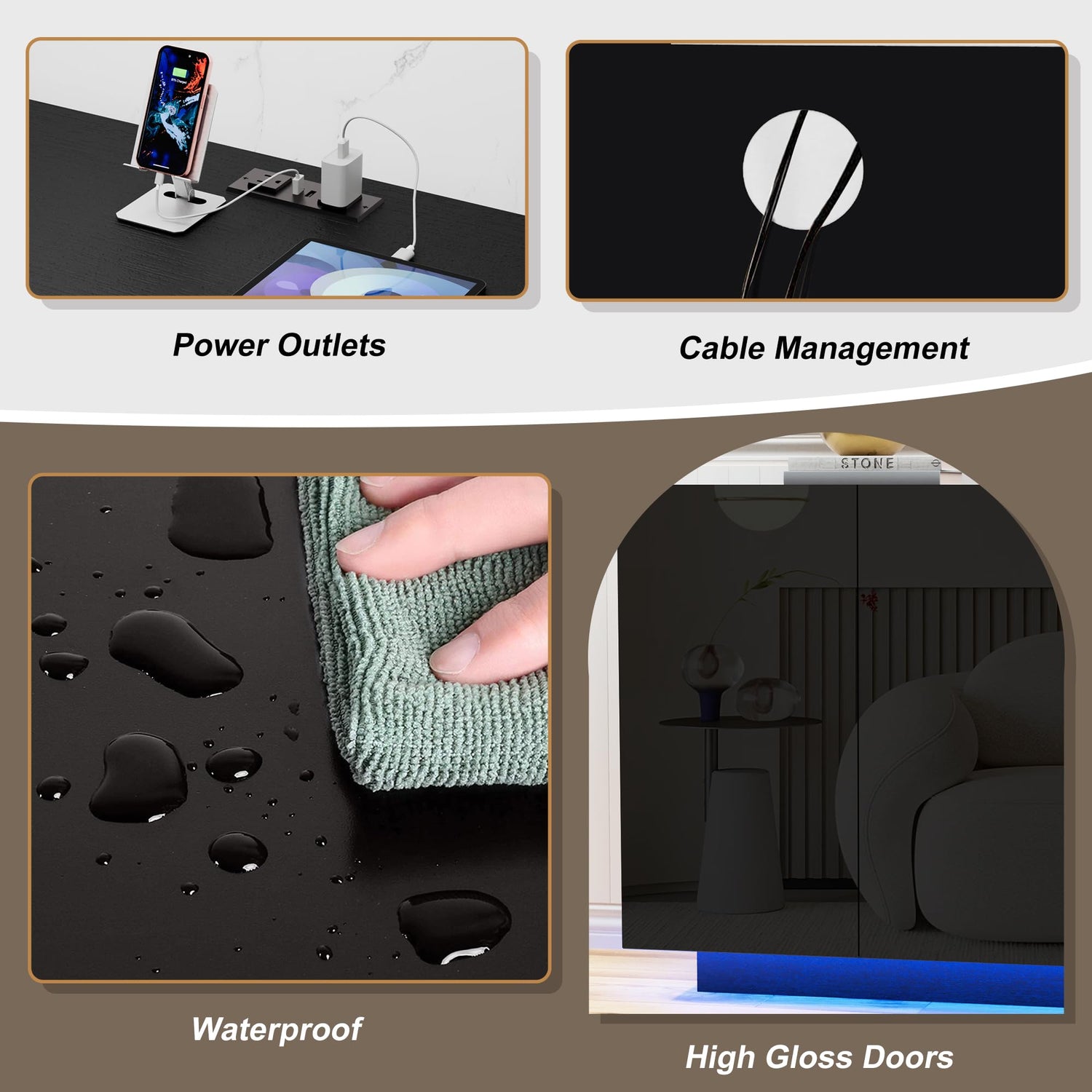 Anbuy Buffet Cabinet with LED Lights Sideboard with Storage Coffee Bar with Charging Station Buffet Cabinet with High Gloss Doors for Kitchen, Bedroom, Living Room (Black LED)