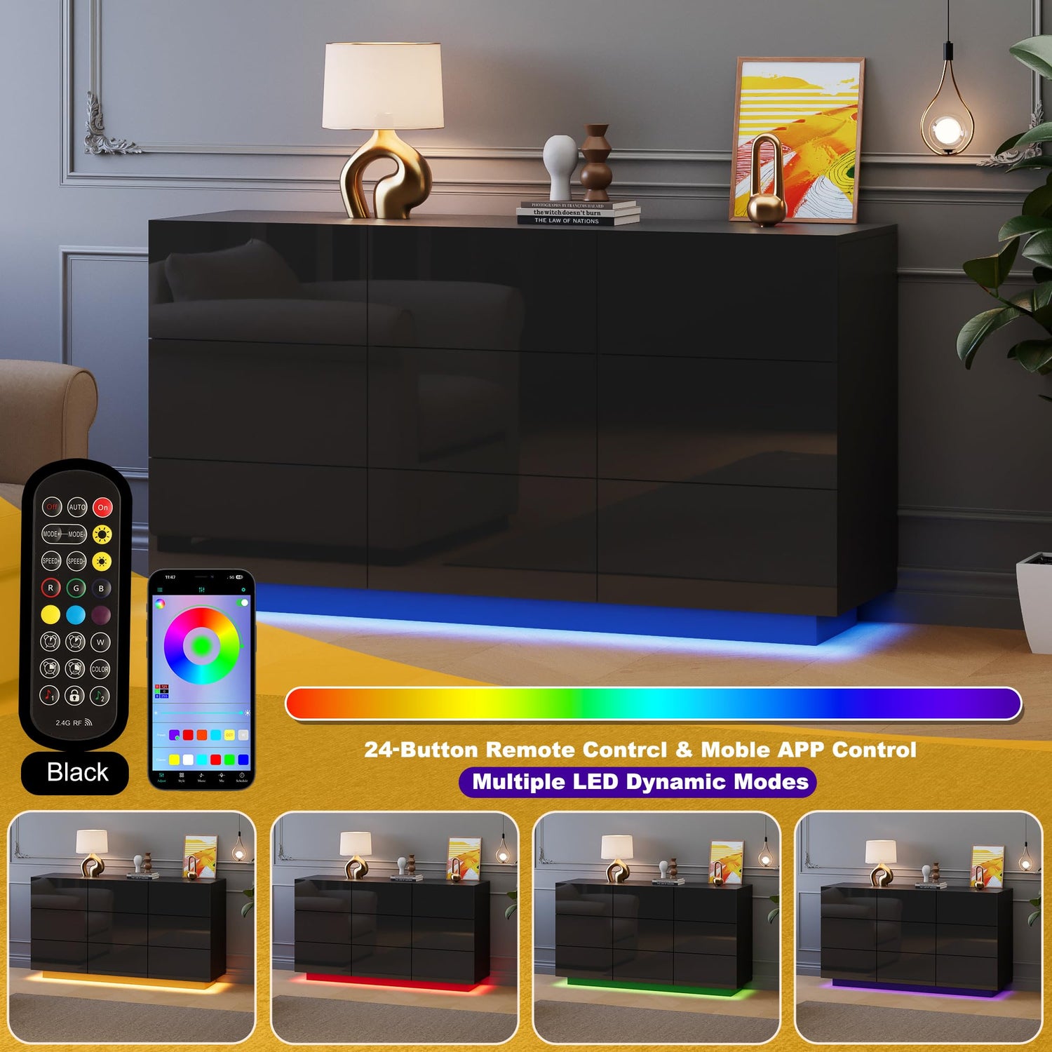 Anbuy LED 9 Drawer Dresser, Black Modern Dresser with High Gloss Drawers Dual Chest of Drawers with Lights for Bedroom (Black)