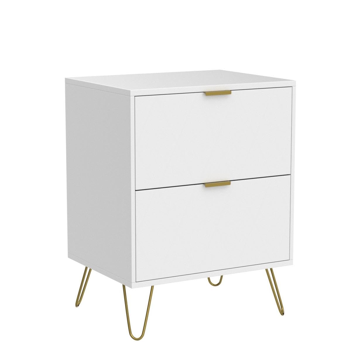 Anbuy White Nightstand Set of 2, End Side Table Double, Bedside Table with 2 Drawers, Dual Night Stand Metal Gold Legs for Bedroom Living Room