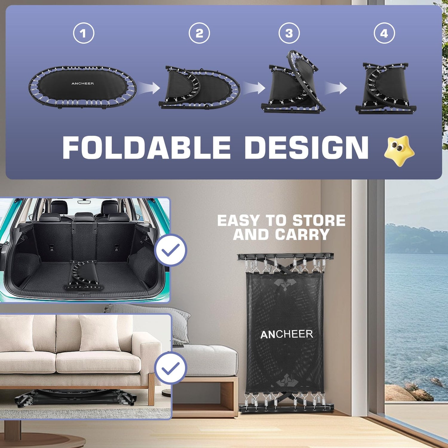 - Easy to Assemble & Foldable Design: 90% of the trampoline body is pre-installed and comes with detailed instructions and installation videos, allowing for quick installation in 20 minutes. The indoor trampoline for kids features a foldable frame design that reduces its size to just 1/3 (4.7 inches) of the original volume for easy storage, with a detachable folding mechanism that requires disassembly for compact storage.