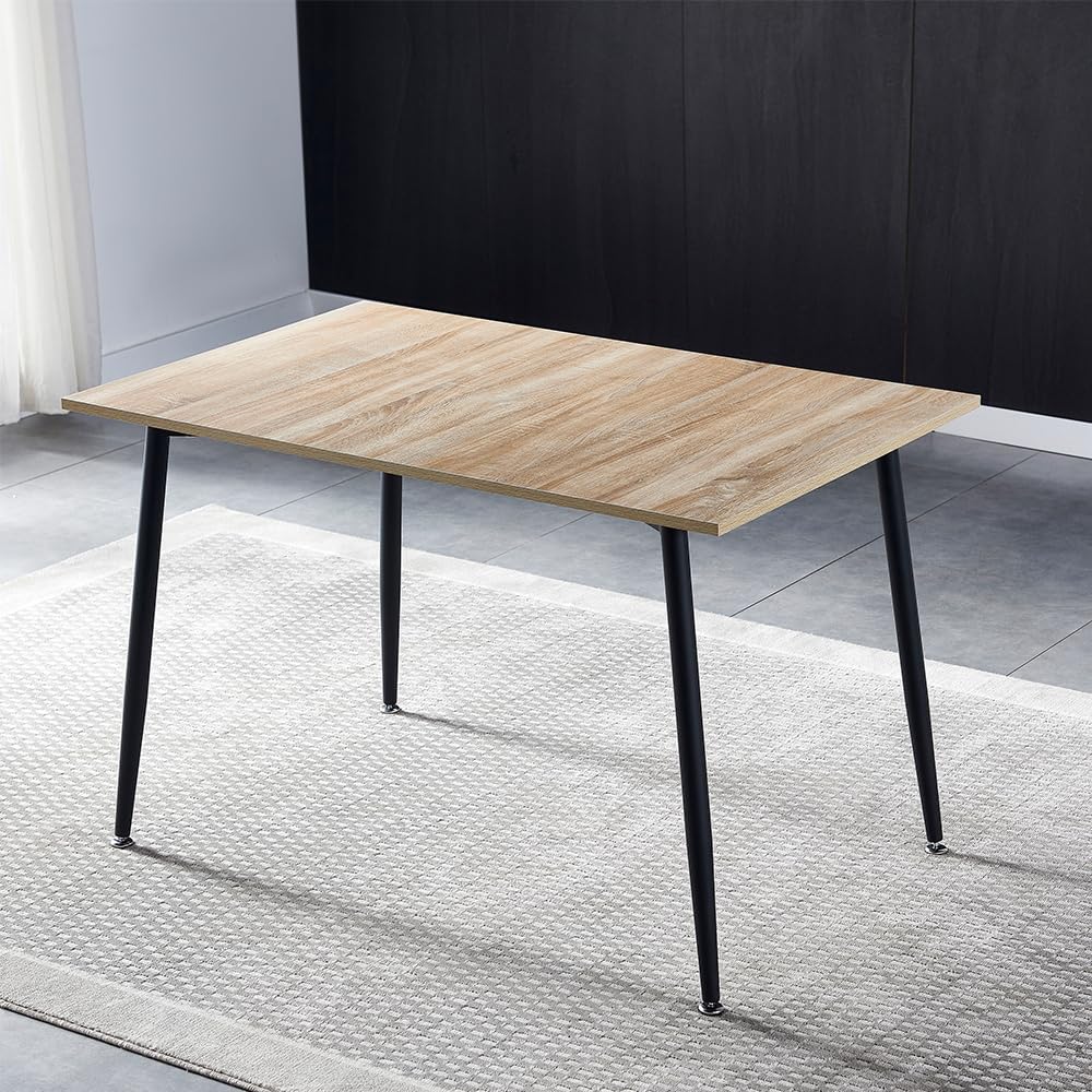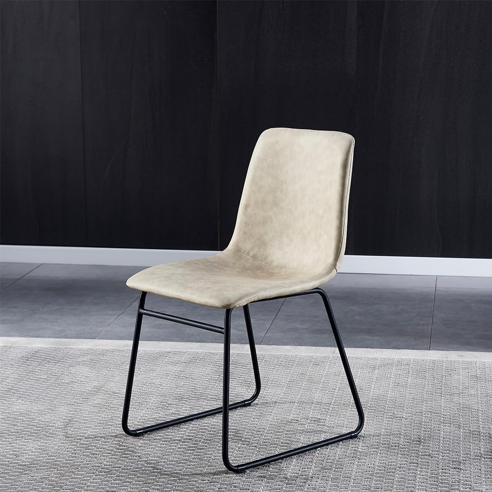 Anchorhome 47"(W) Modern Wooden Dining Table Set for 4/6, with 4 Armless Dining Chairs Plus 2 Sturdy Stools Faux Leather Metal Frame, Dining Room Kitchen Apartment (Vintage Beige)