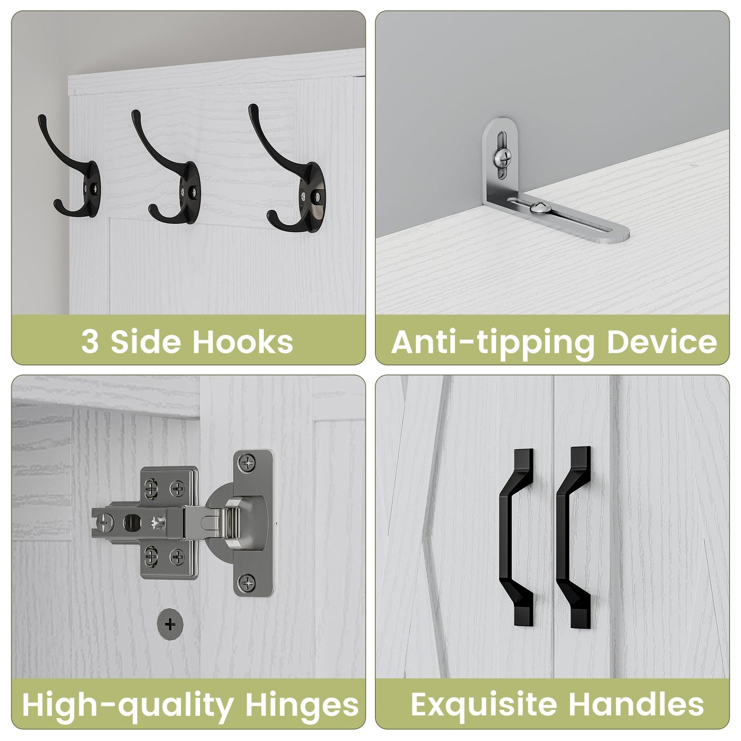 - 【Sturdy & Stable】Crafted from premium MDF wood, this bedroom armoire features anti-tip devices for stability and longevity. It's water-resistant and scratch-proof, with durable drawer slides and high-quality hinges for long-lasting use
