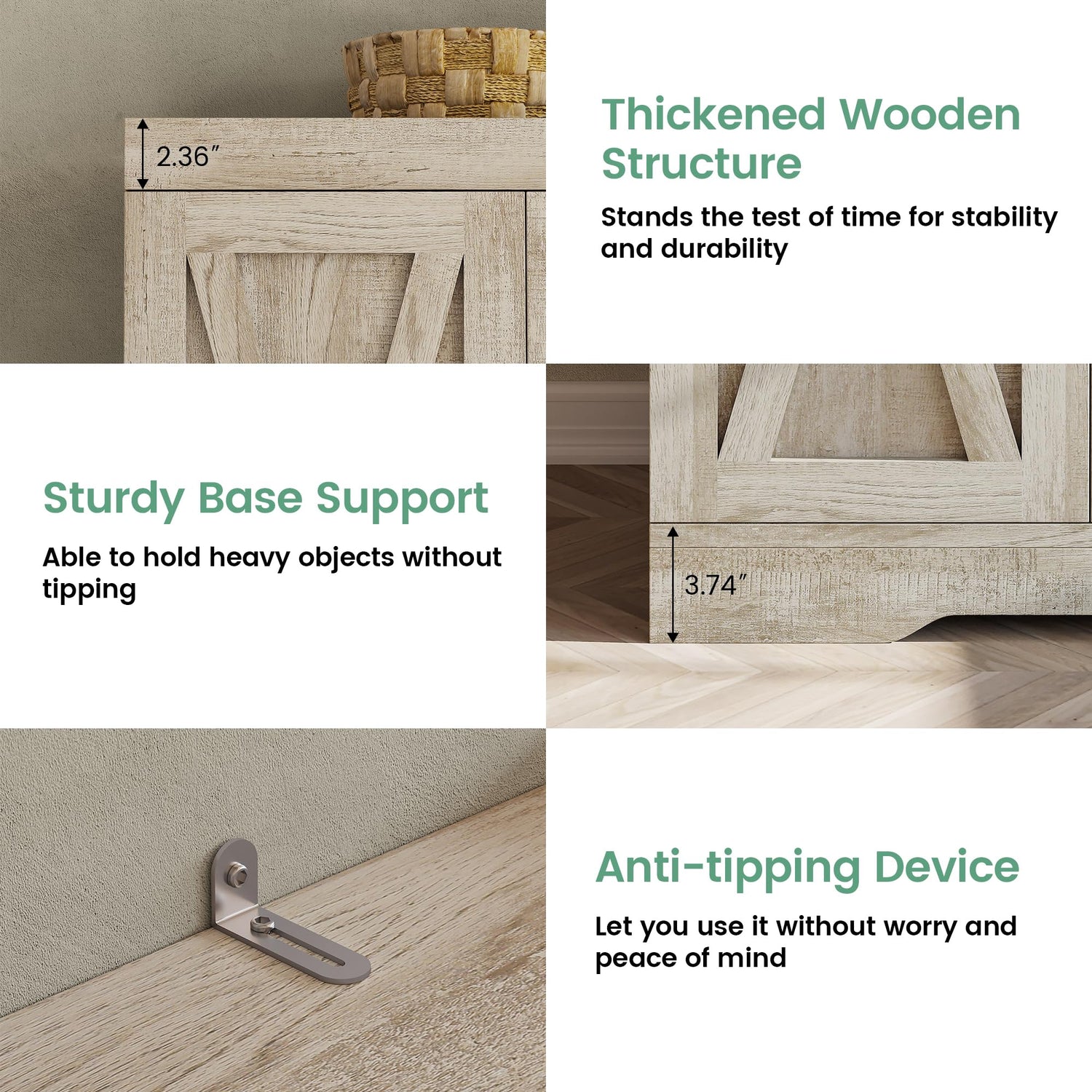 - STURDY CONSTRUCTION & ANTI-TIP DEVICE: This storage cabinet is made of high-quality MDF and features a wall anti-tip device to ensure stability and home safety