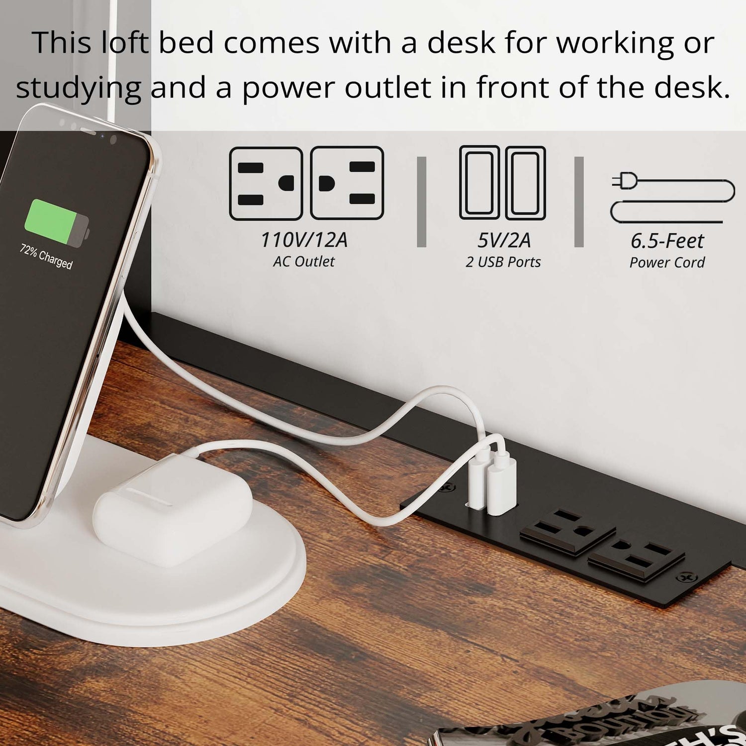 - Multifunctional Loft Bed: This twin loft bed combines the bed and work area, which can make good use of limited space and is very suitable for small apartments. The power output of the desktop also provides convenience for your electronic devices.