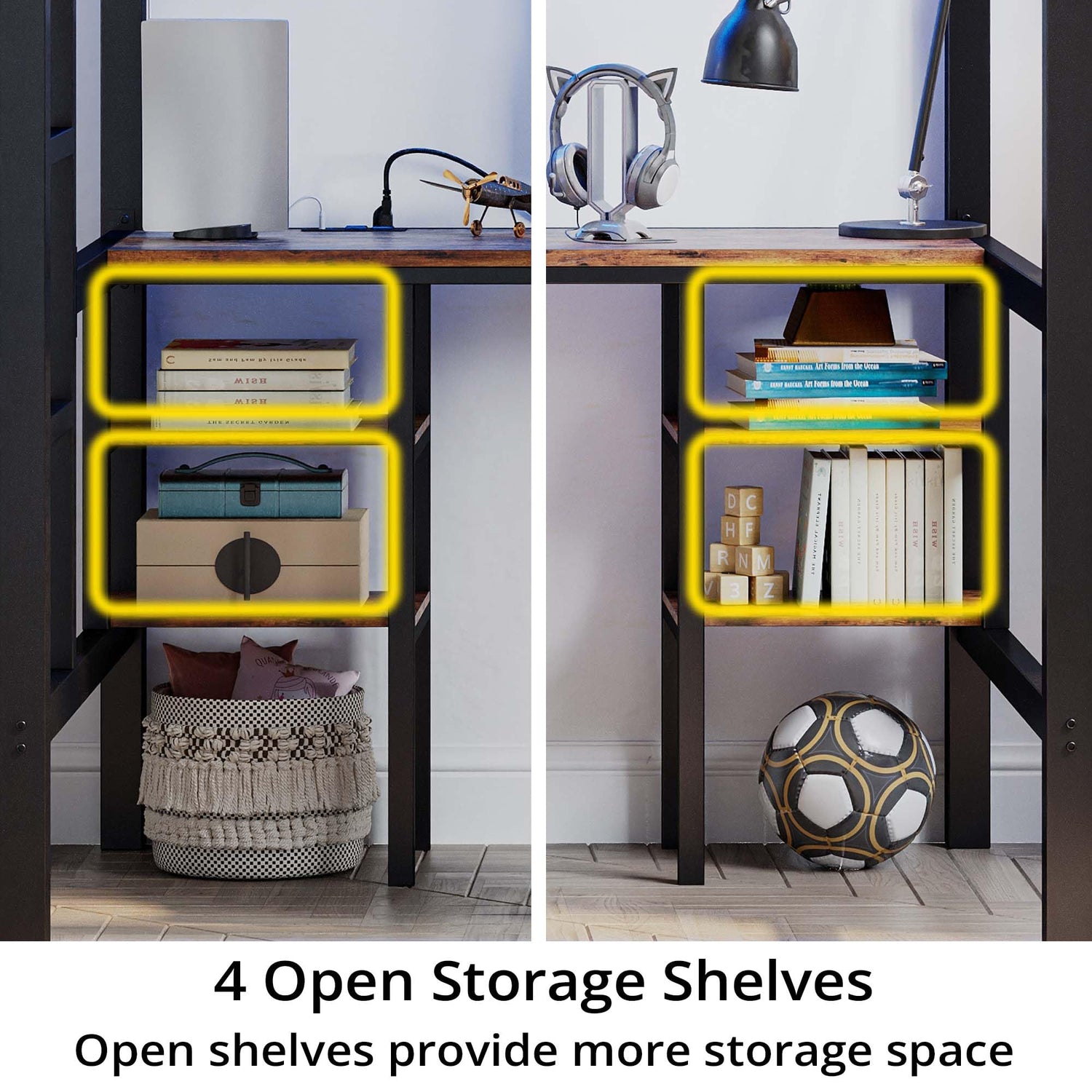 - Storage Design: The loft bed frame has space under the bed, and 4 open storage shelves can hold your books, documents, home printers, and other items.