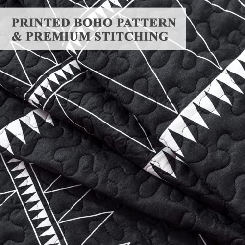 Andency Black Twin Quilt Set, 2 Pieces Boho Lightweight Soft Striped Bedspread for All Season (68"x86"), Printed Bohemian Microfiber Reversible Coverlet Comoforter Sets