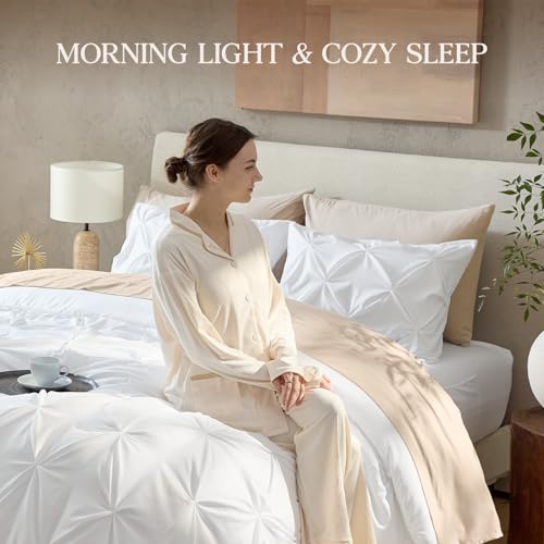 - SOFT AND COZY FABRIC: This pintuck comforter set is made from high-quality microfiber, which is extremely soft and cozy. The white comforter is filled with down alternative microfiber, which is lightweight to reach a perfect balance between warmth and comfort, brings you a good and sound sleep.