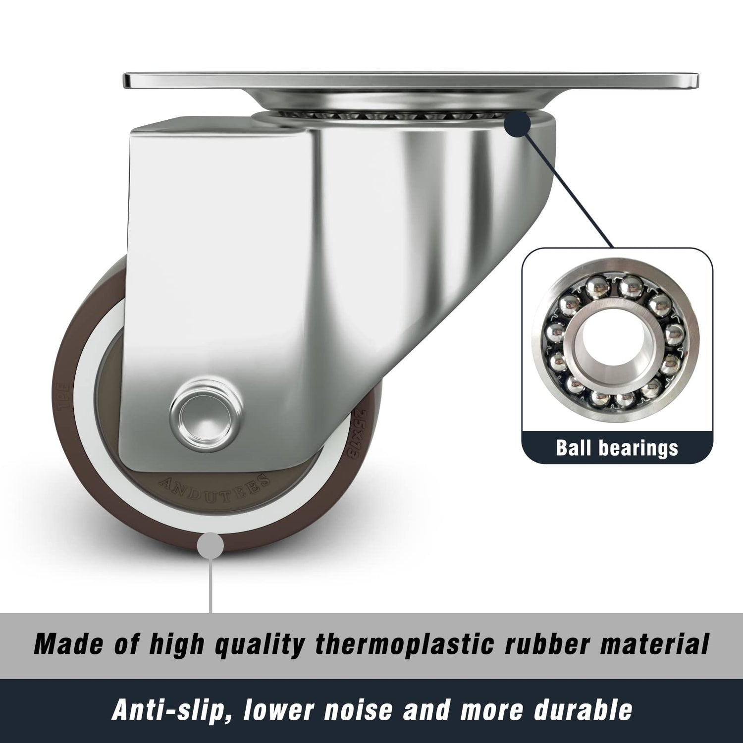 ANDUTEES 1 inch Caster Wheels Set of 4, Low Profile Wheels for Furniture, No Noise Mini Swivel Rubber Casters, with 360 Degree Top Plate for Small Furniture