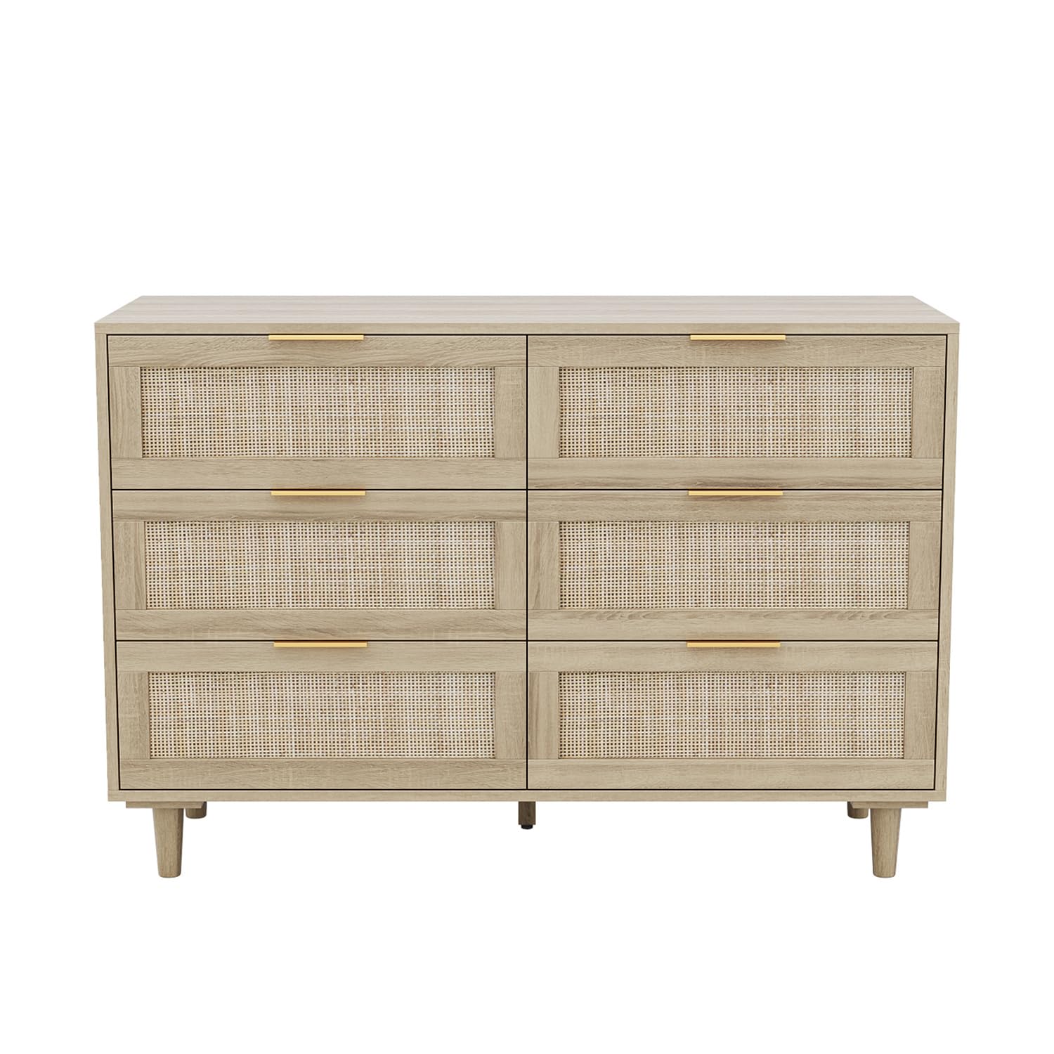 - 【Rattan Dresser for Bedroom】The rattan dresser is equipped with smooth surface, gold metal handles and eye-catching rattan decoration, adding a certain sense of nature and premium beauty, taking on a farmhosue and boho appearance. Perfectly compatible with various decorative styles!