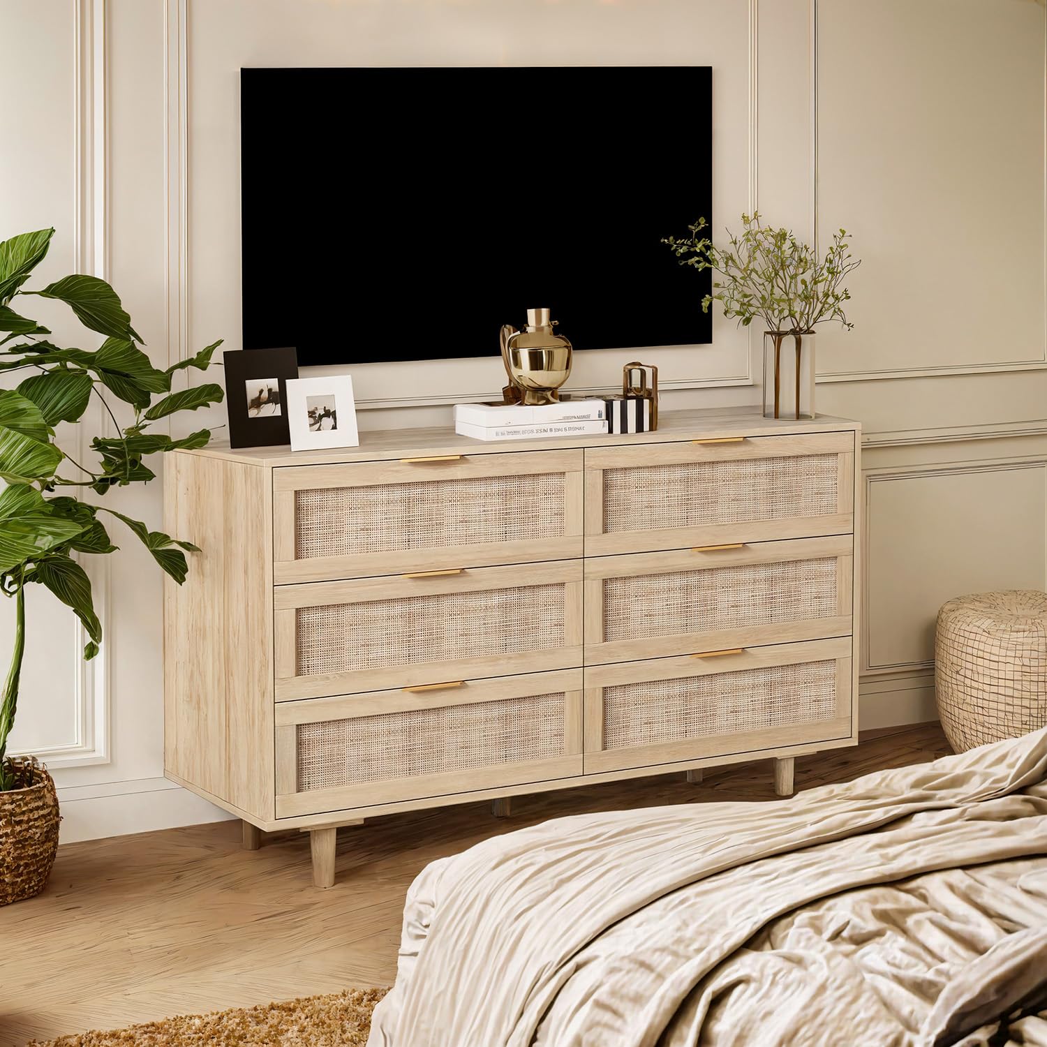 - 【Multi Scenes to Use】You can put rattan dressers in bedrooms, living rooms, entryways or even as tv stand which can support up to 50” TV. It can not only help you keep your room neat and orderly at all times, but also add charm to your home!
