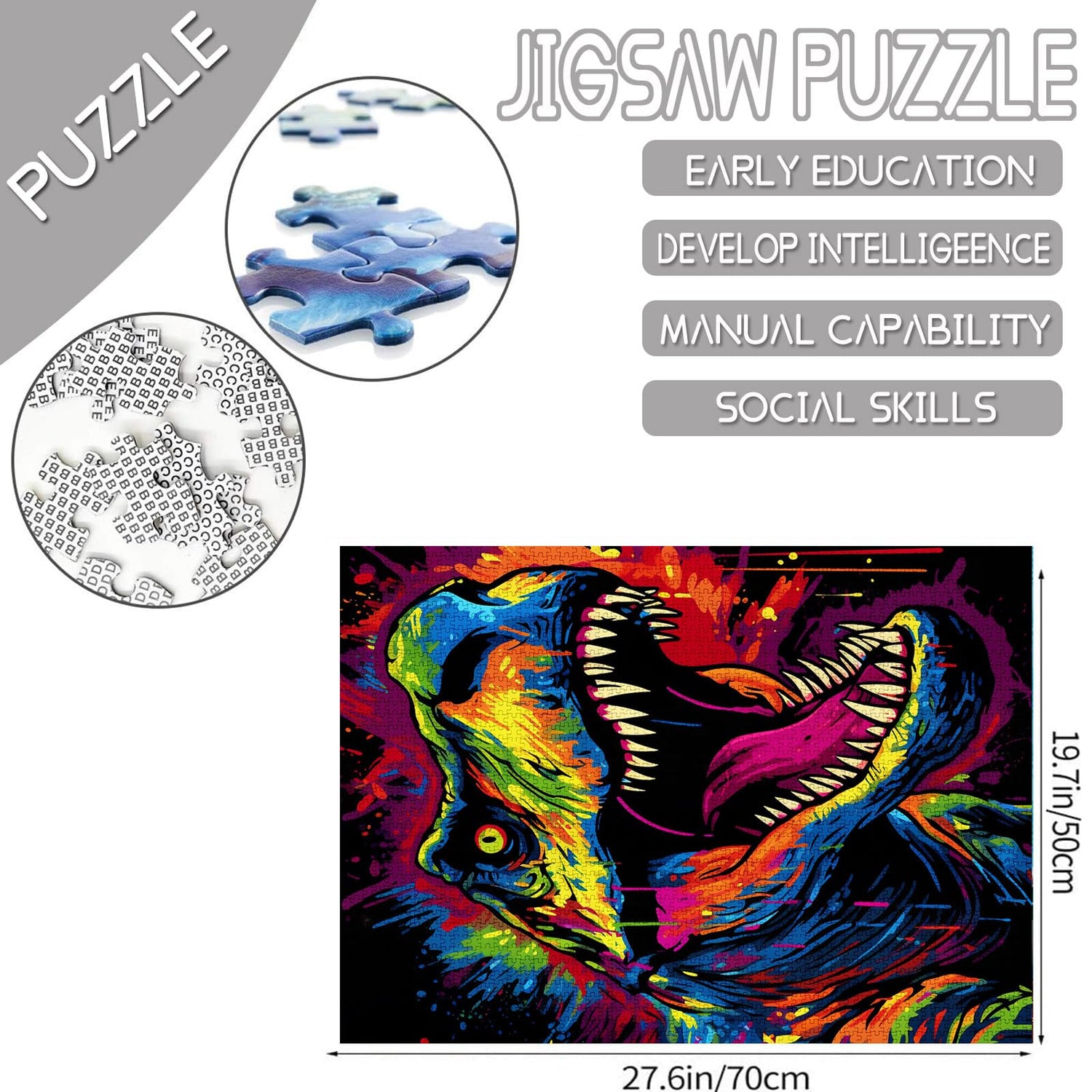 Angry Dinosaur Jigsaw Puzzle 1000 Pieces Puzzles for Adults, Graffiti Animal Jigsaw Puzzles for Challenging Family Activity Games DIY Puzzle for Home Wall Decor Gifts - 20 x 27 Inches