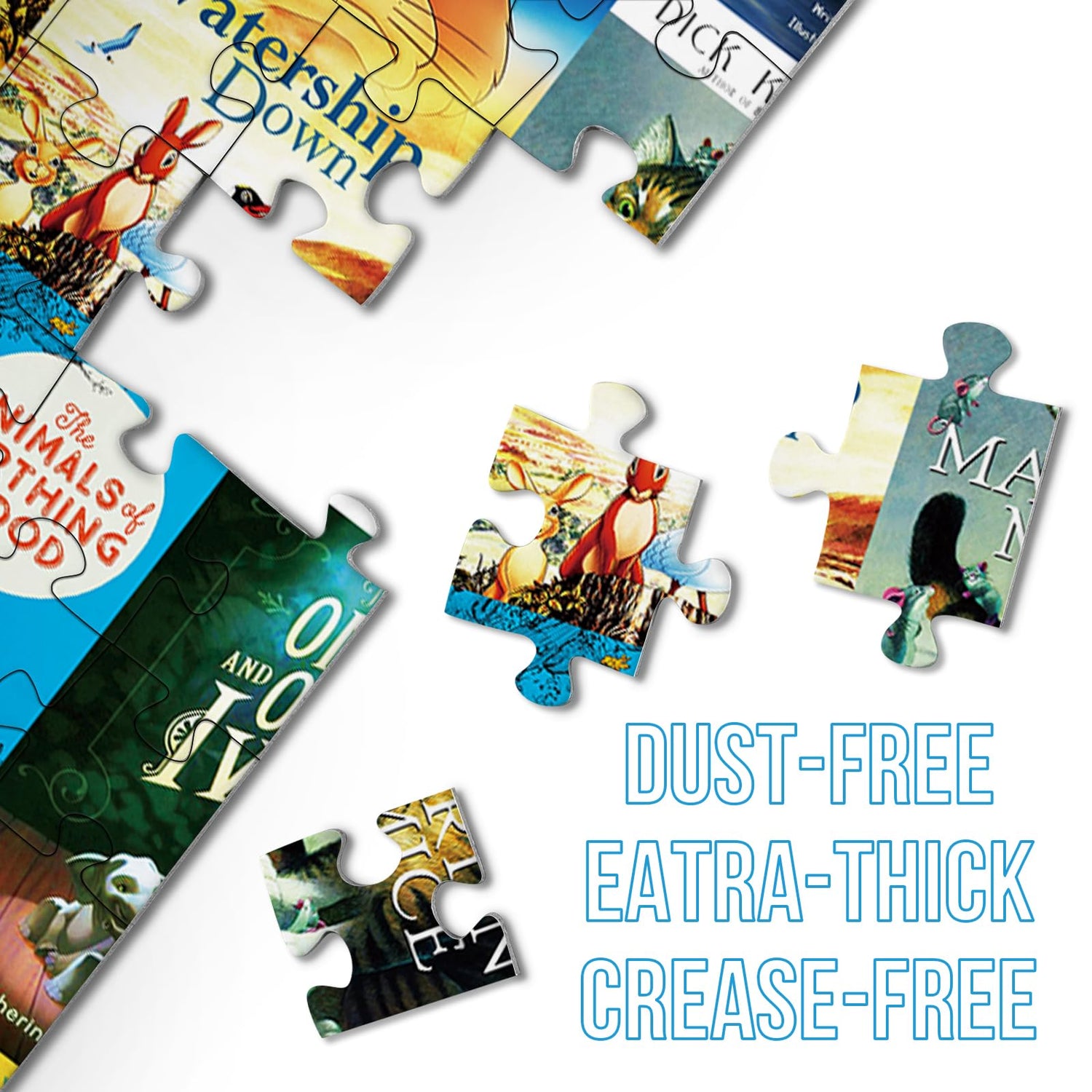 - THE PACKAGE INCLUDES - The package includes the animal book jigsaw puzzles (Size after finished: 27.5 x 19.7in), a Standard sturdy packing box and a colorful double sided poster, one side of the beautiful poster guides you through the puzzle, while the other side describes about each name and introduction of each book. Puzzles 1000 pieces for adults, each piece of the puzzle has letters at the back