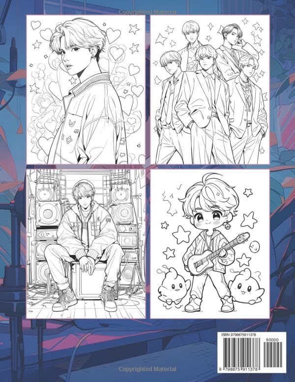 Welcome to the dazzling world of K-pop with "Anime Coloring Book: K-Pop Boys." This unique coloring book is not just a journey through Japanese comic and manga styles but a combination with charismatic kpop idols. Perfect for kids, teens, and adults seeking stress relief, this coloring book captures the essence of Korean pop culture in the Korean entertainment world.