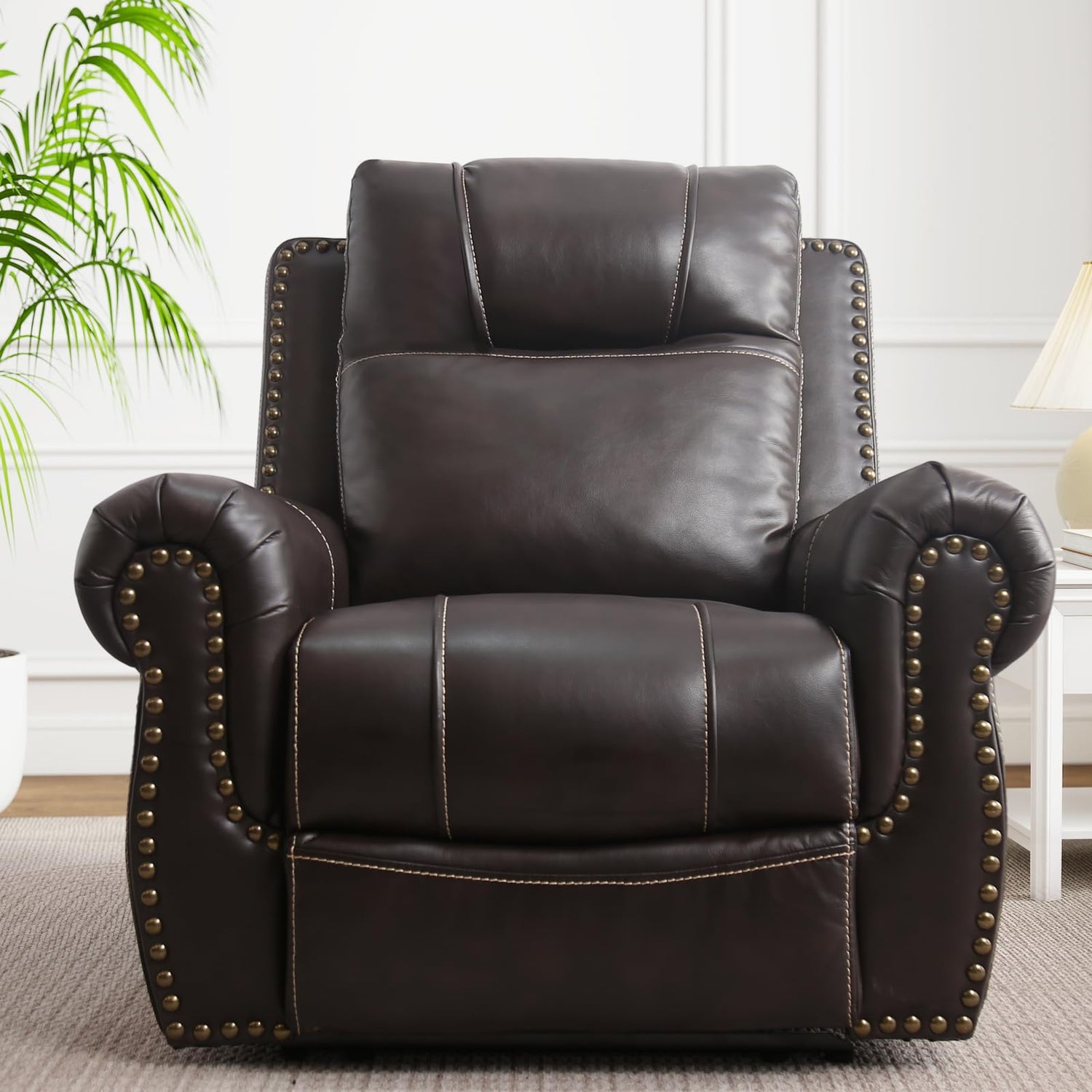 ANJ Electric Power Recliner Chair with USB Ports, Breathable Faux Leather Oversized Recliner with Comfortable Arms, Back and Headrest, Single Sofa for Living Room, Dark Brown
