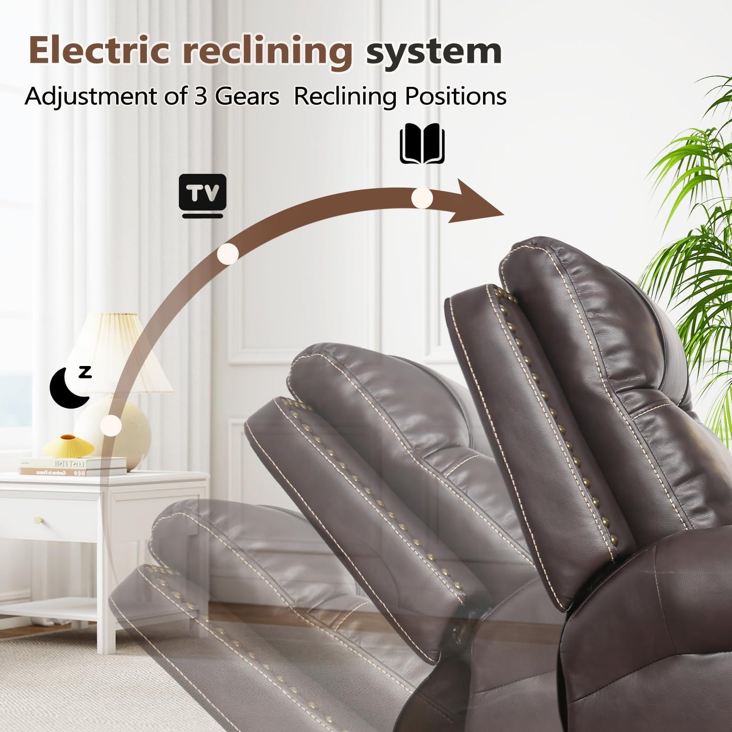 - Electric Reclining System: Simple two buttons press activate reclining function with extremely smooth gentle motion. It will be a great benefit especially for people physically challenged due to ages or disease.