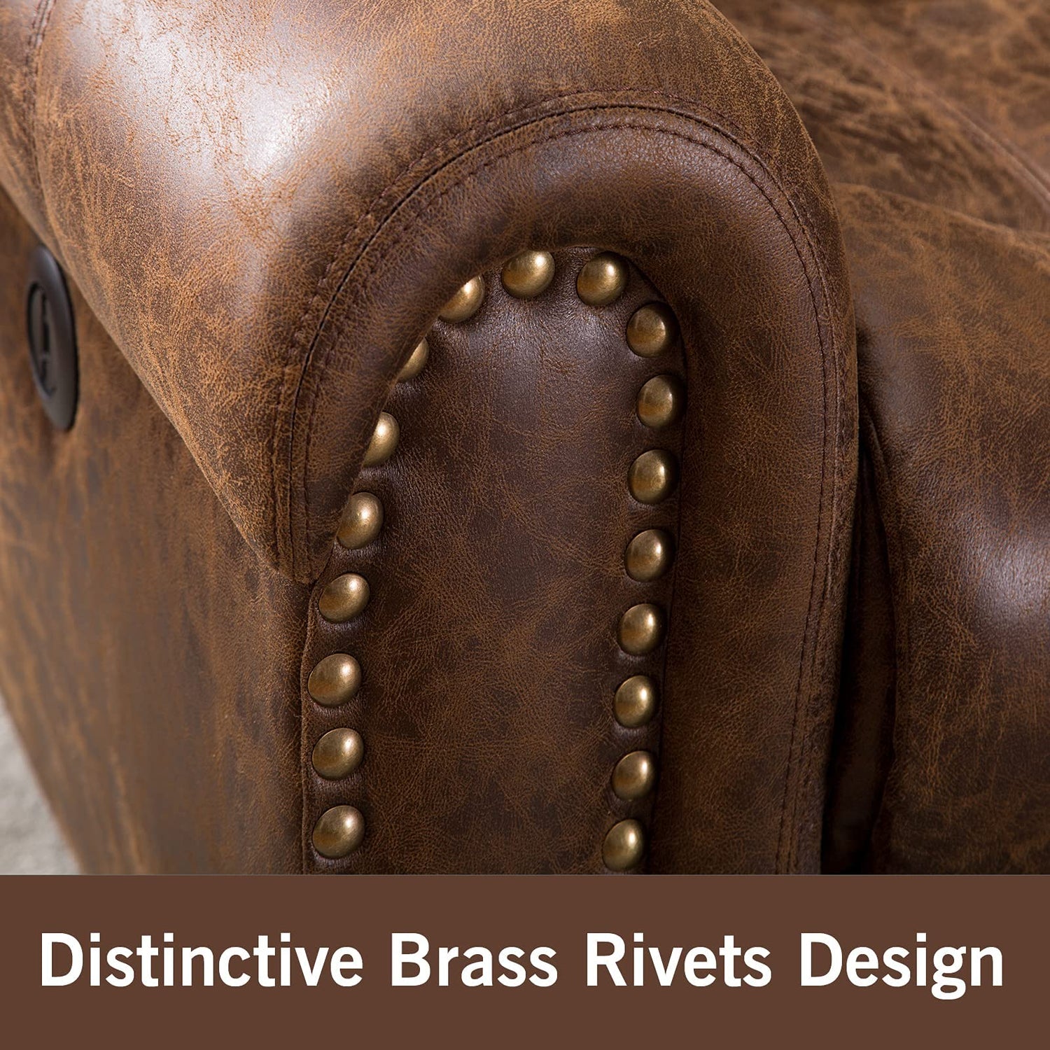 ANJ Electric Power Recliner Set of 2, Breathable Bonded Leather Reclining Chair Classic Home Theater Recliners Seating W/USB Port, Electric Recliner Chairs for Living Room (Nut Brown)