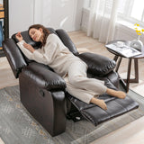 ANJ Manual Recliner Chair, Breathable Faux Leather Reclining Chairs with Overstuffed Arm and Back, Living Room Single Sofa Recliners (Dark Brown)