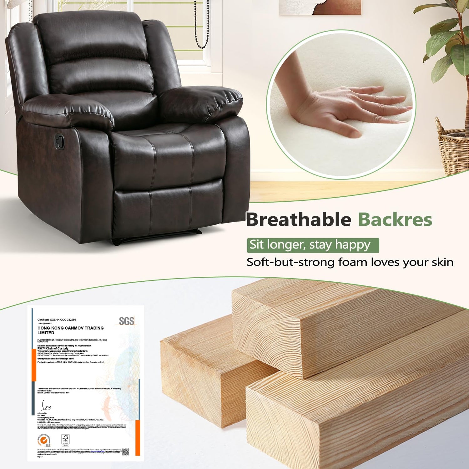 - 【FSC-Certified】:The frame of the recliner chair is made of FSC-certified wood
