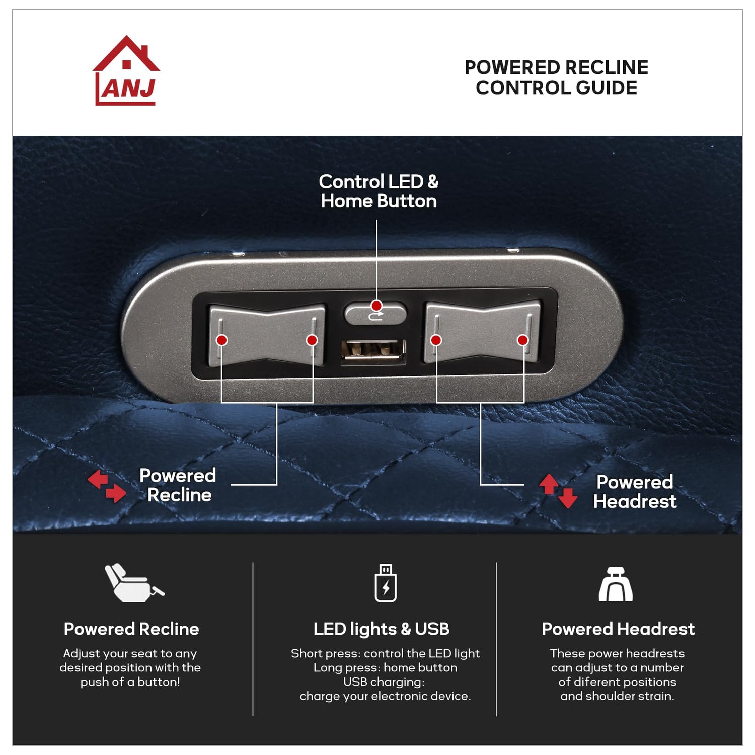 ANJ Power Home Theater Seating Recliner chairs, PU Leather Recliner with Cup Holder, Electric Movie Theater Reclining Chairs with Adjustable Powered Headrest, Blue LED, Hidden Arm Storage (Black-Blue)